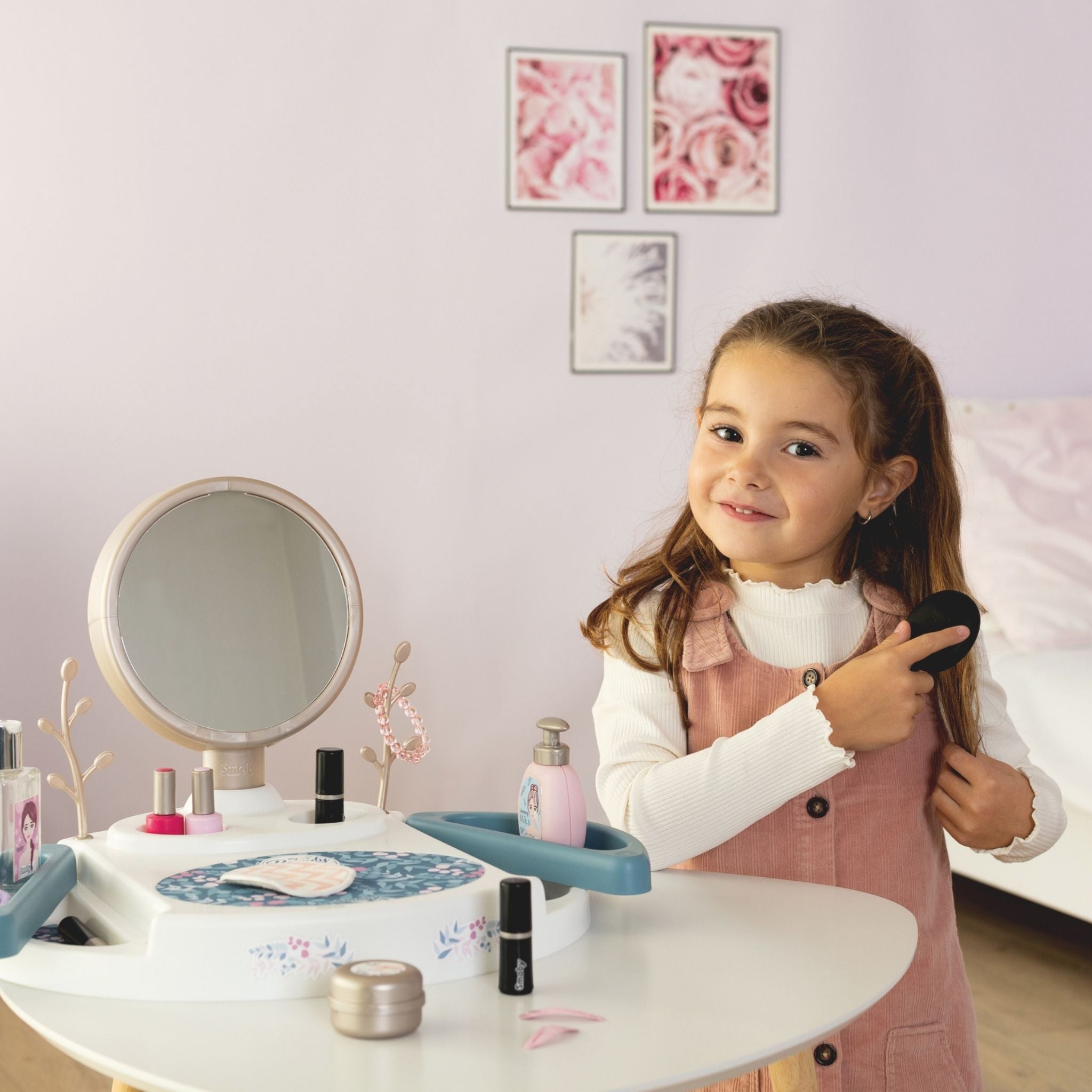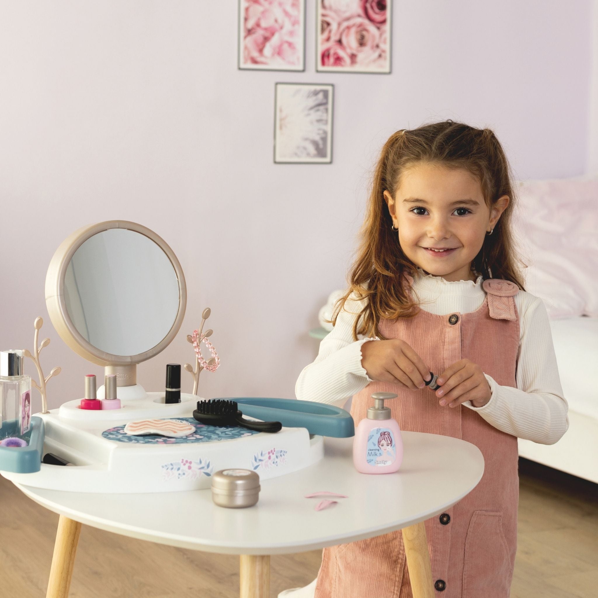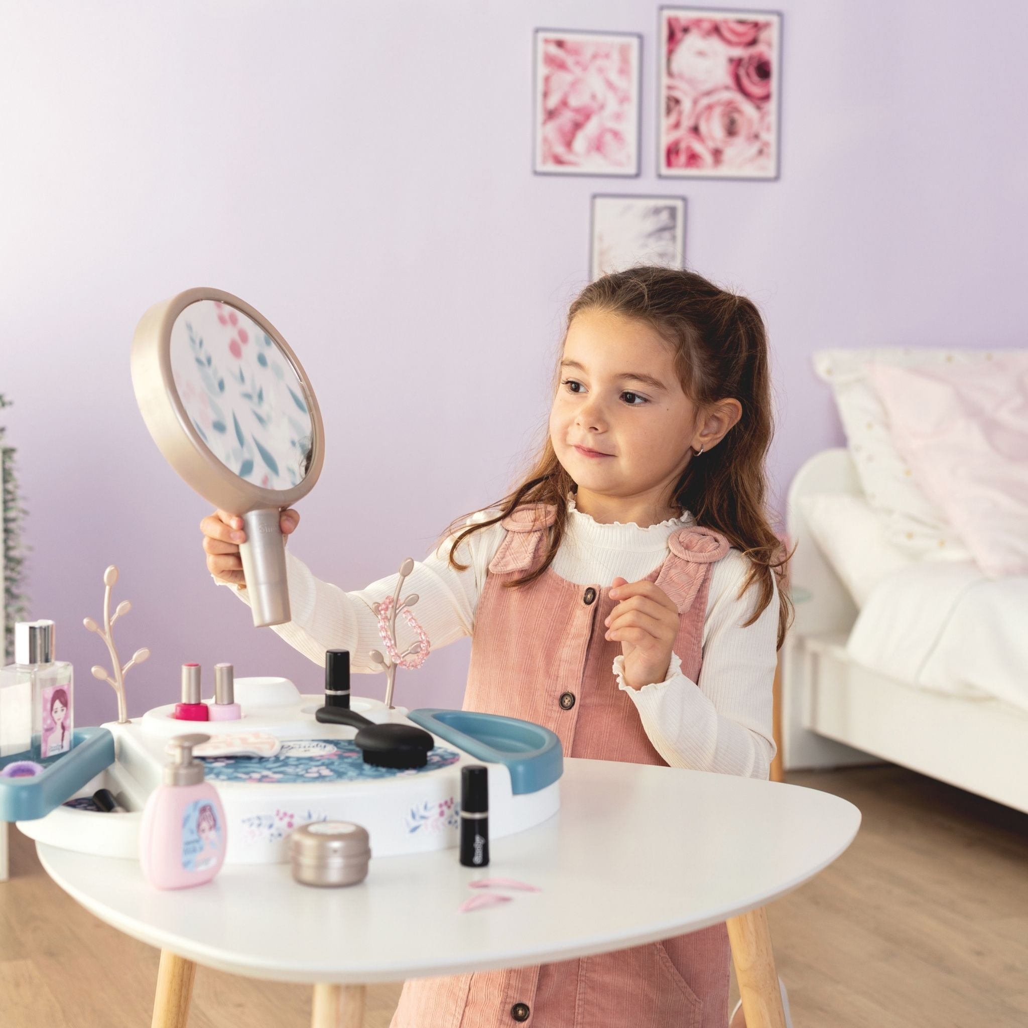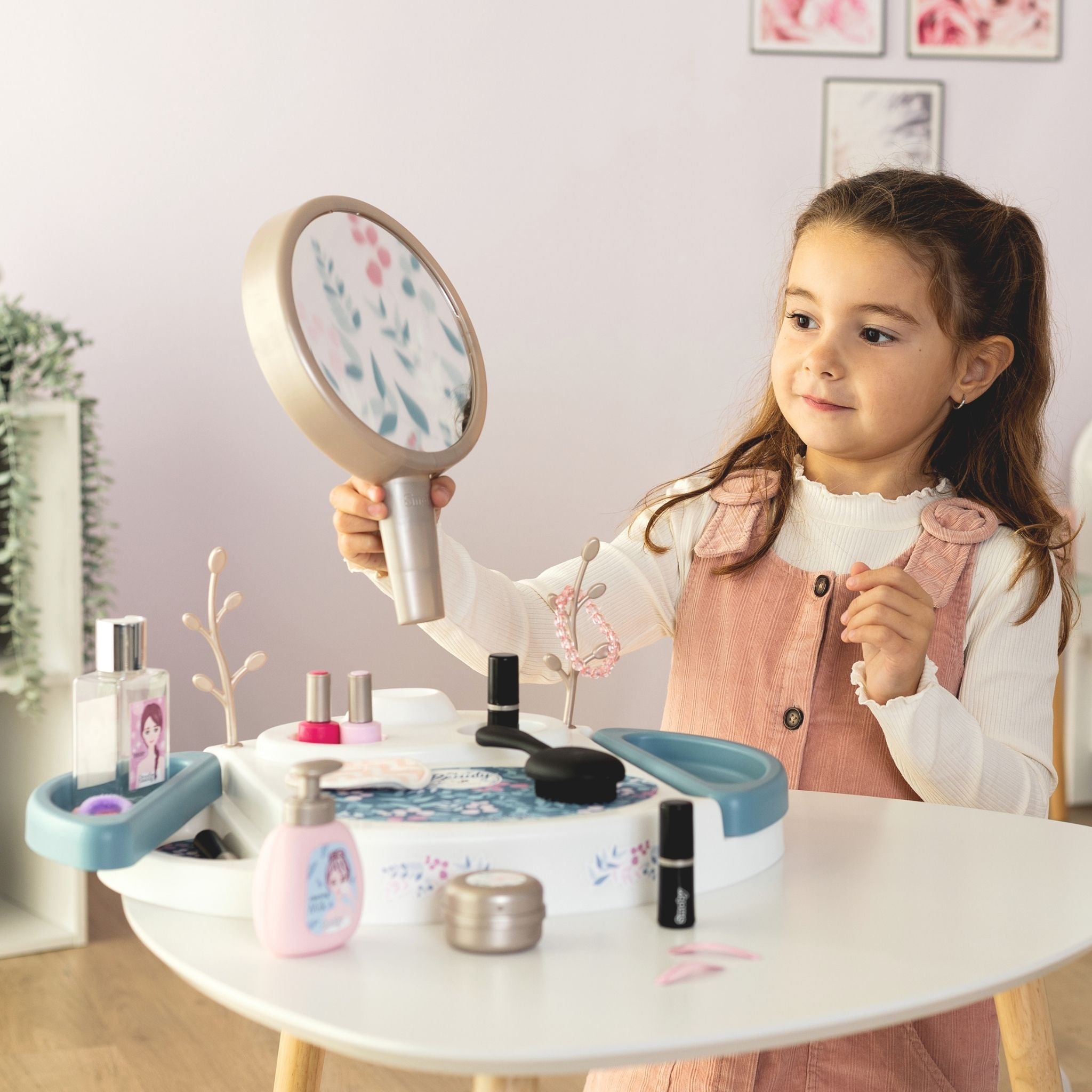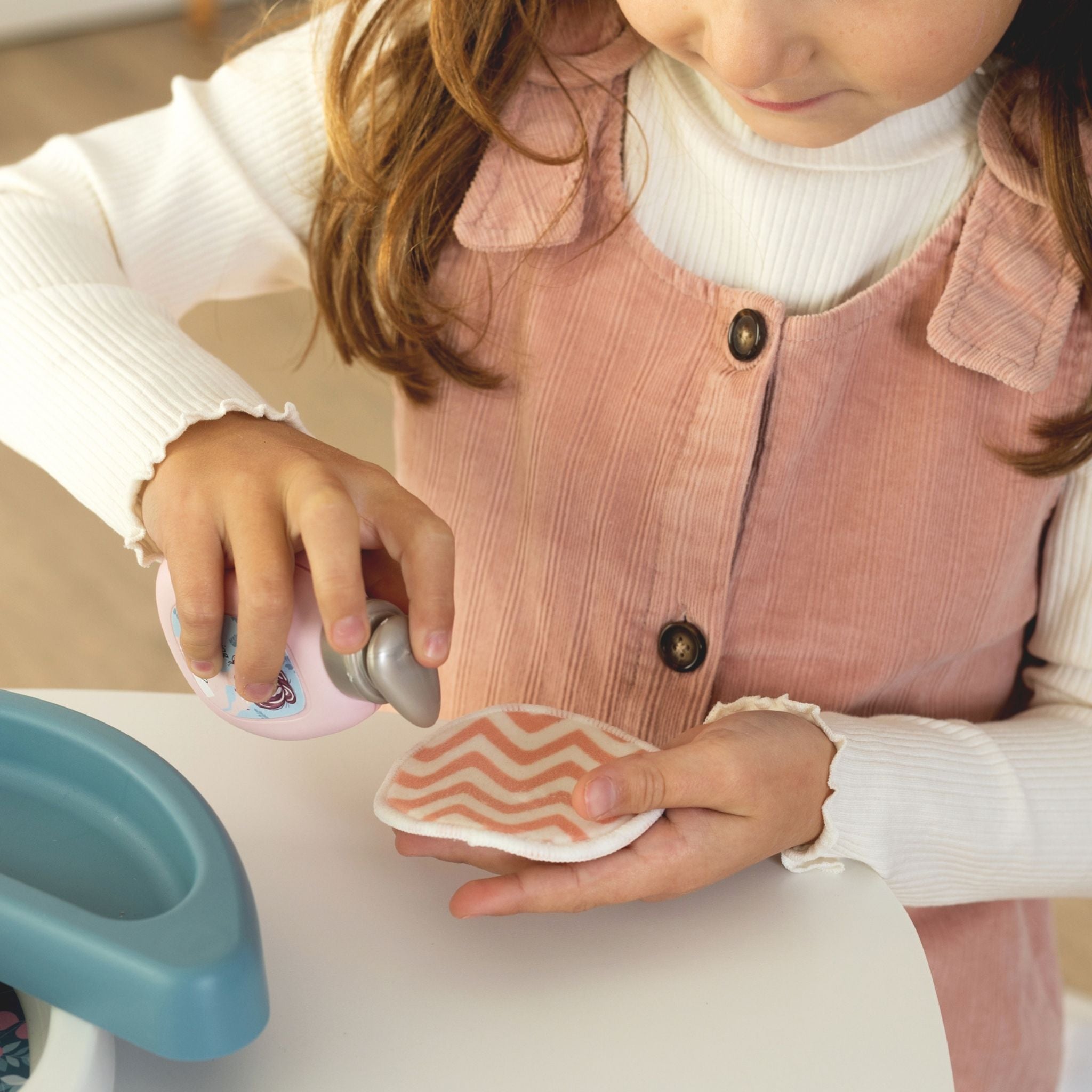 Smoby’nin My Beauty Studio Güzellik Oyun Seti, çocuklara eğlenceli bir rol yapma deneyimi sunarak hayal gücünü canlandırıyor. Saç şekillendirme, makyaj ve tırnak bakımı temalarını bir araya getiren bu masa üstü oyun seti, küçüklerin kendi güzellik stüdyolarını kurmalarına imkan tanıyor. Şık ve modern tasarımıyla çocuk odasına mükemmel uyum sağlayan My Beauty Studio, çocuğun boyuna göre ayarlanabilir ve çıkarılabilir aynası, ekstra saklama alanı sunan döner rafları ve takılar için tasarlanmış iki özel takı ağacıyla fonksiyonel bir kullanım sağlıyor. Set, oyun deneyimini daha da eğlenceli hale getiren 15 parça aksesuar ile birlikte geliyor. İçinde mekanik fonksiyonlu rujlar, ojeler, maskara, pompa şişesi, krem kabı, losyon şişesi, makyaj pamuğu, fırça, saç tokaları ve bilezik gibi detaylı parçalar bulunuyor. Tüm malzemeler rol yapma amaçlı oyuncaktır ve çocukların güvenliği düşünülerek üretilmiştir. Fransa’da üstün kaliteli malzemelerle üretilen Smoby My Beauty Studio, hem yaratıcı oyunları destekleyen hem de el becerilerini geliştiren bir güzellik setidir.