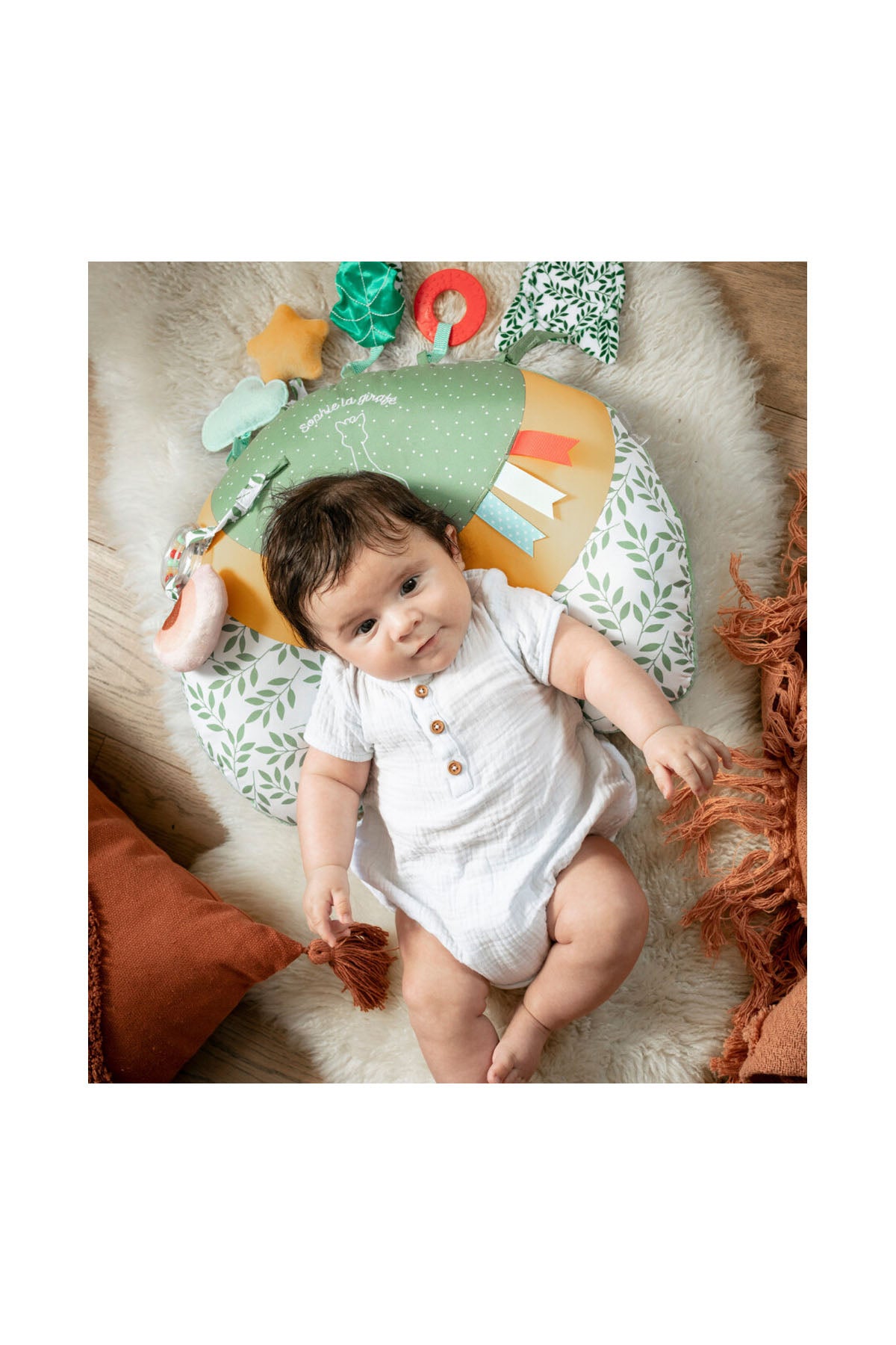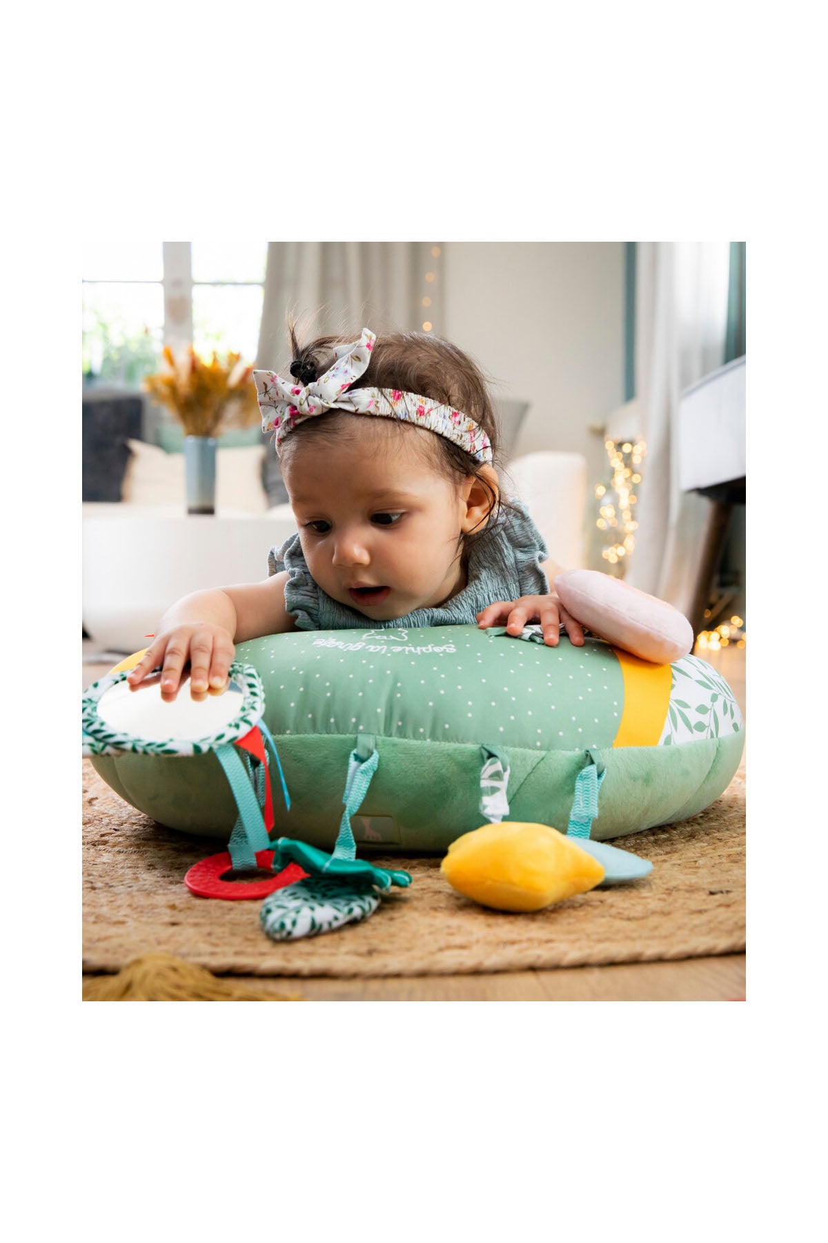 Sophie la Girafe 2'si Bir Arada Aktivite Minderi, bebekleriniz için eğitici ve eğlenceli bir seçenektir. Sophie la Girafe'den aktivite oyuncak oyuncakları Yastık şeklinde, yeşil, beyaz, sarı ve kırmızı tonlarında eğlenceli Sophie la Girafe aktivite oyuncağıdır. Sophie la Girafe aktivite oyuncakları oyuncağı yumuşak bir kalitede üretilmiştir. Sophie la Girafe 2'si Bir Arada Aktivite Minderi ile bebekleriniz keyifli zamanlar geçirecektir.