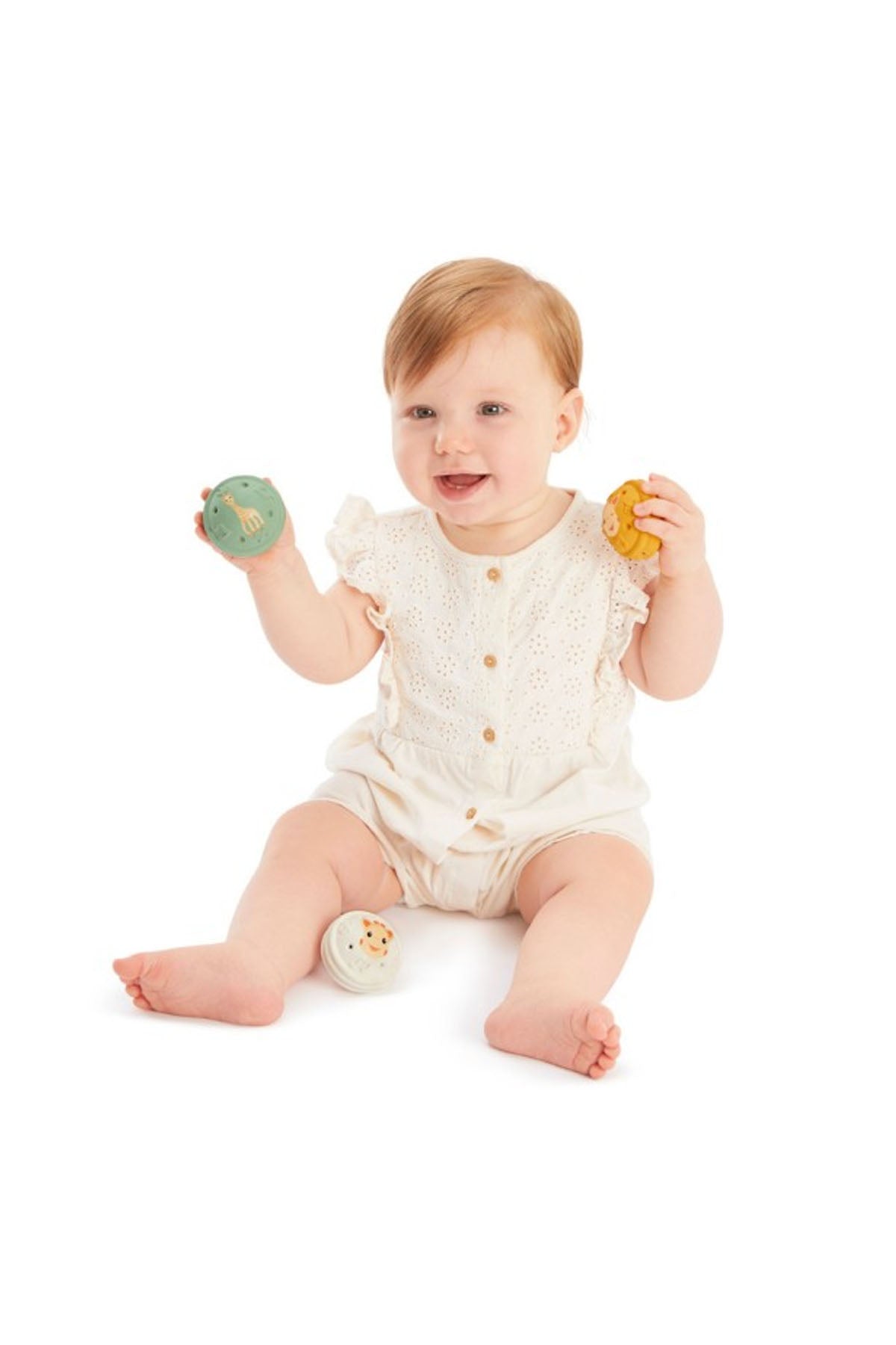 Bebeğinizin işitme duyusunu harekete geçirmek için farklı seslere sahip 3 müzikli kauçuk top! %100 doğal kauçuktan üretilmiş müzikli toplar hafiftir ve kullanımı kolaydır! 3 farklı sesi etkinleştirmek için 3farklı eylem gereklidir: Bebeğiniz yeşil topu hafifçe sıktığında, buruşuk kağıdın yumuşak sesini duyar Beyaz topu sallayarak, bir zil çınlaması duyar, sarı topa kısaca basarak, Sophie La Girafe'nin meşhur sesi duyulur! Bebeğinizin işitsel duyusunu geliştirir ve neden-sonuç kavramını keşfetmesini ve anlamasını sağlar.