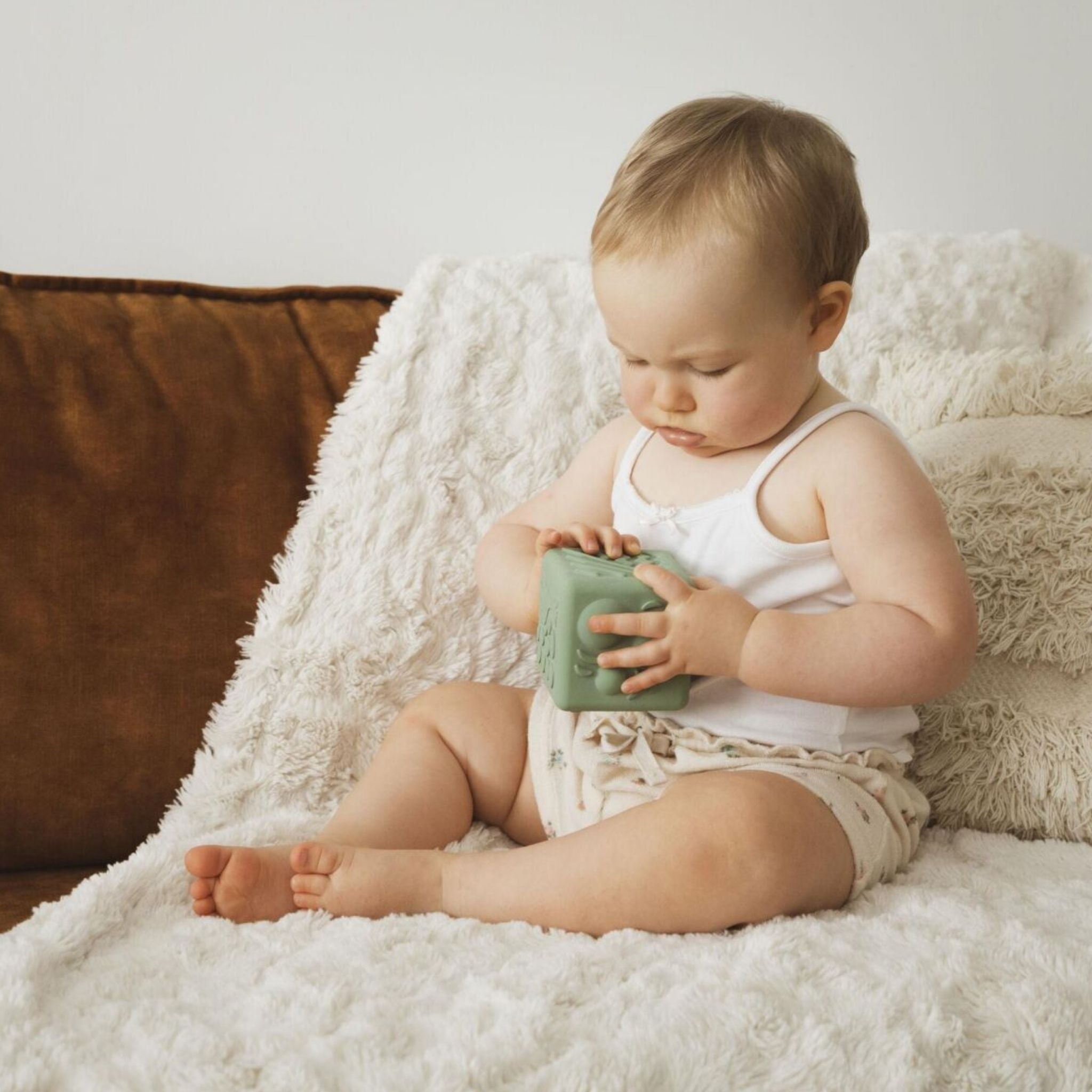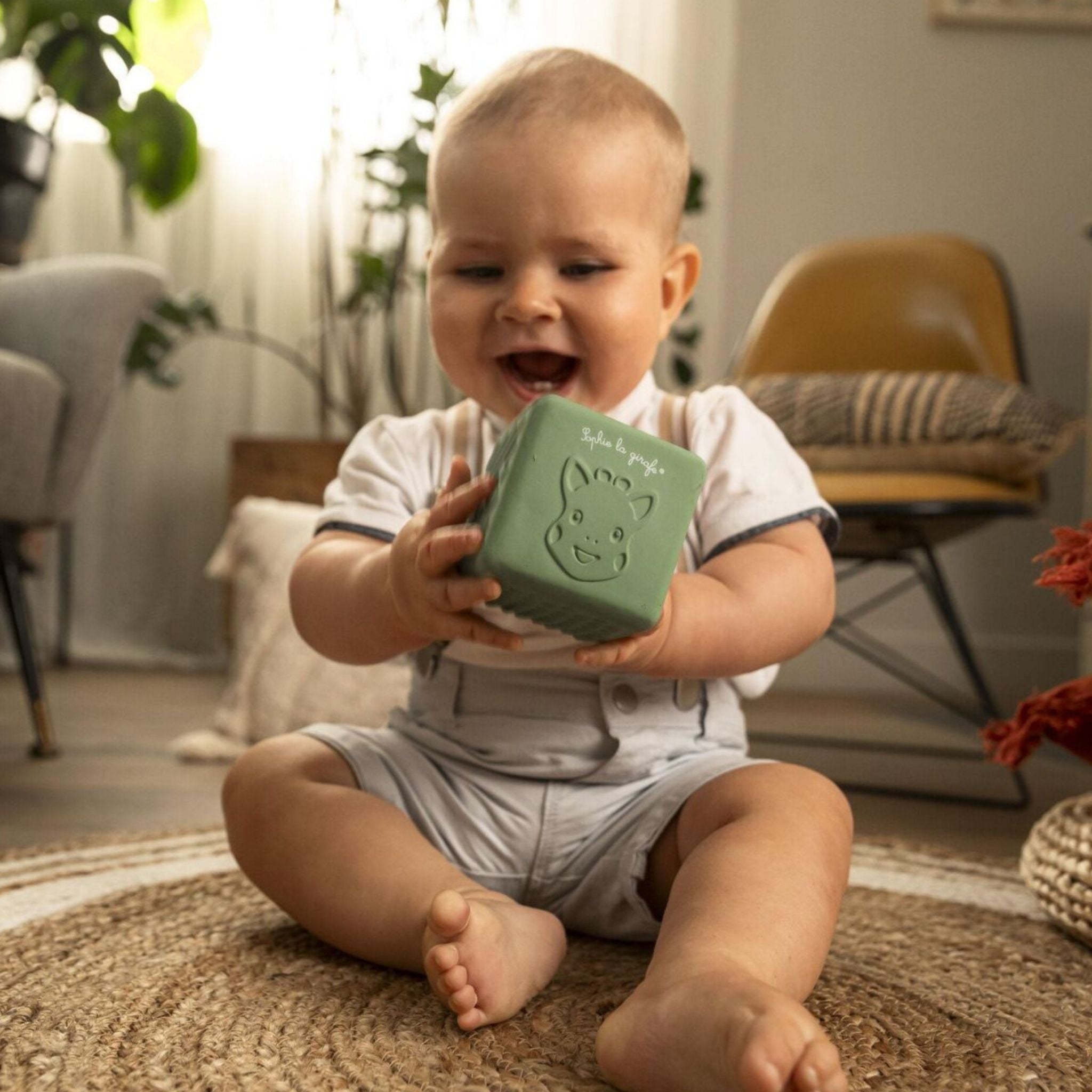 Sophie la Girafe Dokulu Küp, bebeklerin duyusal gelişimini destekleyen eğitici ve eğlenceli bir oyuncaktır. %100 doğal kauçuktan üretilen bu özel küp, hafif ve esnek yapısı sayesinde minik ellerin kolayca kavrayabileceği şekilde tasarlanmıştır. Bebek sağlığına uygun malzemelerden üretilmiş olup kimyasal madde içermez. Küpün her bir yüzeyinde farklı dokular ve şekiller bulunur. Kabartmalı Sophie la Girafe desenleri, Zigzag çizgiler, düğmeler ve özel kabartmalar sayesinde bebekler dokunarak keşfetmeyi öğrenir. Bu özellik, hem motor becerilerin hem de dokunsal farkındalığın gelişmesine katkı sağlar. Yuvarlama, fırlatma ve kavrama aktiviteleriyle eğlenceli vakit geçiren bebekler, aynı zamanda el-göz koordinasyonlarını da güçlendirir. Sophie la Girafe Dokulu Küp, 3 aydan itibaren bebeklerin gelişim yolculuğuna eşlik eden güvenli bir oyun arkadaşıdır.