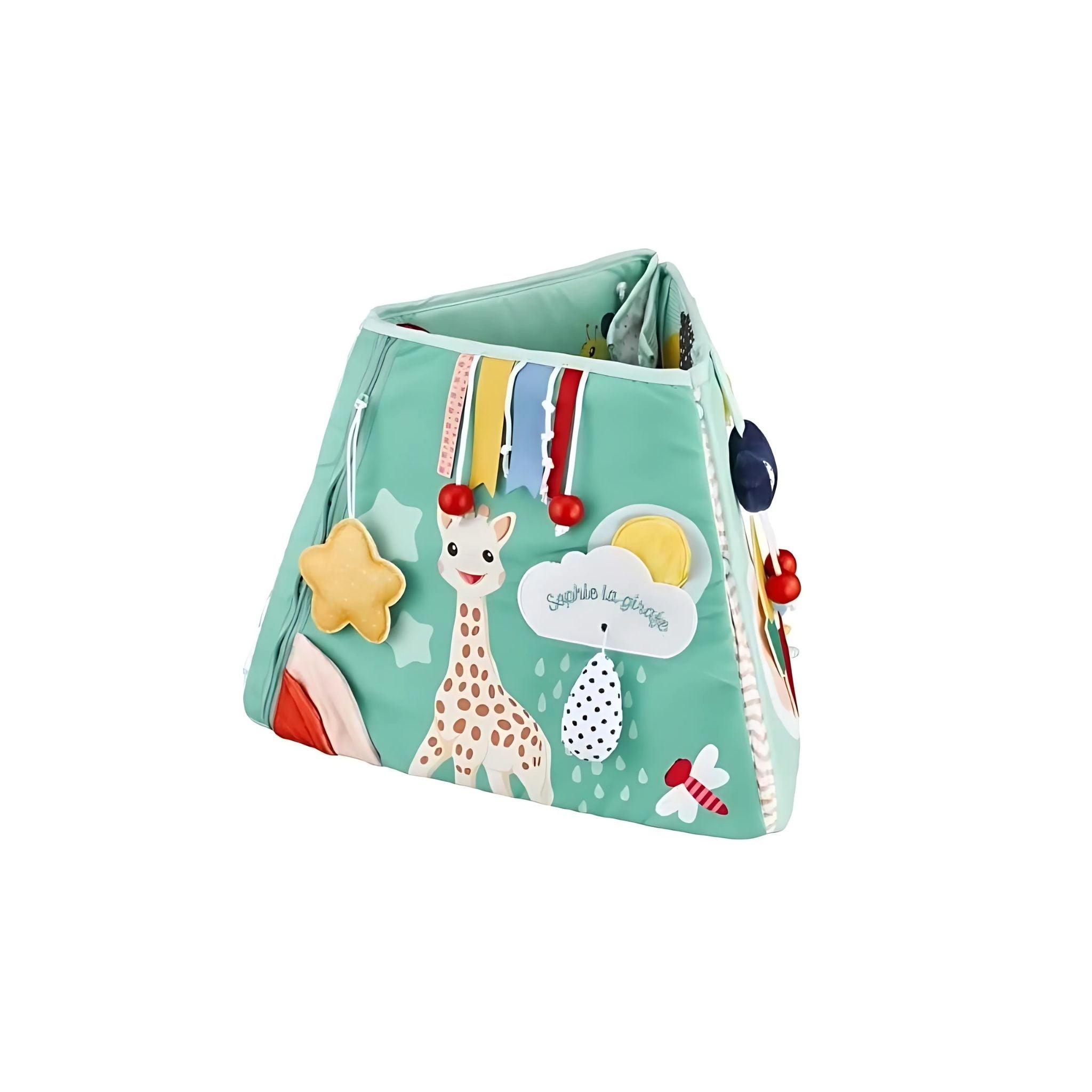 Sophie la Girafe Fresh Touch Çok Taraflı Activity Board, doğumdan itibaren kullanılabilen, bebeğinizin duyusal gelişimini ve ince motor becerilerini desteklemek için özel olarak tasarlanmış interaktif bir aktivite oyuncak setidir. 14’ten fazla farklı aktivite sunan bu çok yönlü oyun paneli, bebeğinizin farklı pozisyonlarda eğlenerek öğrenmesini sağlar. Her detayı düşünülerek tasarlanmış bu oyuncakta; çeşitli dokular, renkli detaylar, sesli ögeler ve diş kaşıyıcı gibi özelliklerle bebeklerin dokunma, görme, işitme ve tat alma duyuları uyarılır. Aynı zamanda fermuar, bağcık, lastik bant ve bilye gibi ince motor becerilerini geliştiren araçlar sayesinde bebekler etkileşimli ve öğretici bir oyun deneyimi yaşar. Gelişim evrelerine uygun şekilde kullanılabilen bu ürün; sırt üstü yatarak, karın üzerinde ya da oturarak oynanabilir. Katlanabilir yapısı sayesinde kolay taşınır, az yer kaplar ve pratik bir şekilde saklanabilir. Sophie la Girafe Çok Taraflı Activity Board, bebeğinizin hem eğlenmesini hem de gelişimini aynı anda destekleyen pratik, güvenli ve etkileşimli bir oyun arkadaşıdır. İlk aylardan itibaren duyulara hitap eden bu tasarım, bebeğinizin gelişim yolculuğuna keyifli bir katkı sağlar.