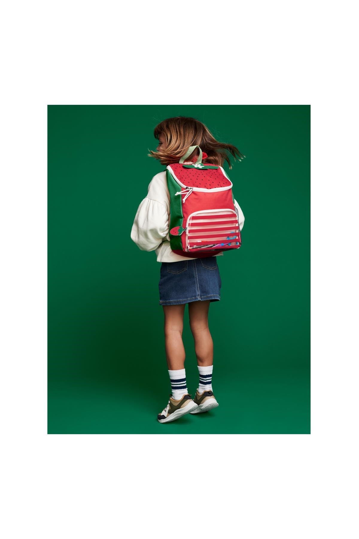 Enerjik çilek temasıyla miniklerin favorisi olacak bu sırt çantası, okul ve günlük kullanım için hem fonksiyonel hem de göz alıcı bir seçenek sunar. Skip Hop’un Spark Style koleksiyonuna ait bu büyük boy çanta; klasör, defter, suluk ve öğle yemeği kutusu gibi tüm okul ihtiyaçlarını taşımak için ideal boyuttadır. Canlı renkler ve sevimli çilek desenleriyle süslenen tasarım, çocuğunuzun stilini yansıtırken organize kalmasına da yardımcı olur. Tamamen açılabilir geniş ana bölme ve astarlı şeffaf ön cep, eşyaların kolayca yerleştirilmesini ve bulunmasını sağlar. Yan taraftaki elastik file cep ise su şişesi gibi sık kullanılan eşyalar için erişimi kolaylaştırır. Ayarlanabilir pamuk askılar ve yumuşak tutma sapı ile taşıması konforlu hale gelirken, dayanıklı ve silinebilir polyester malzeme sayesinde uzun ömürlü kullanım sunar. Çocuk sağlığı düşünülerek ftalat içermeyen materyallerle üretilmiştir.