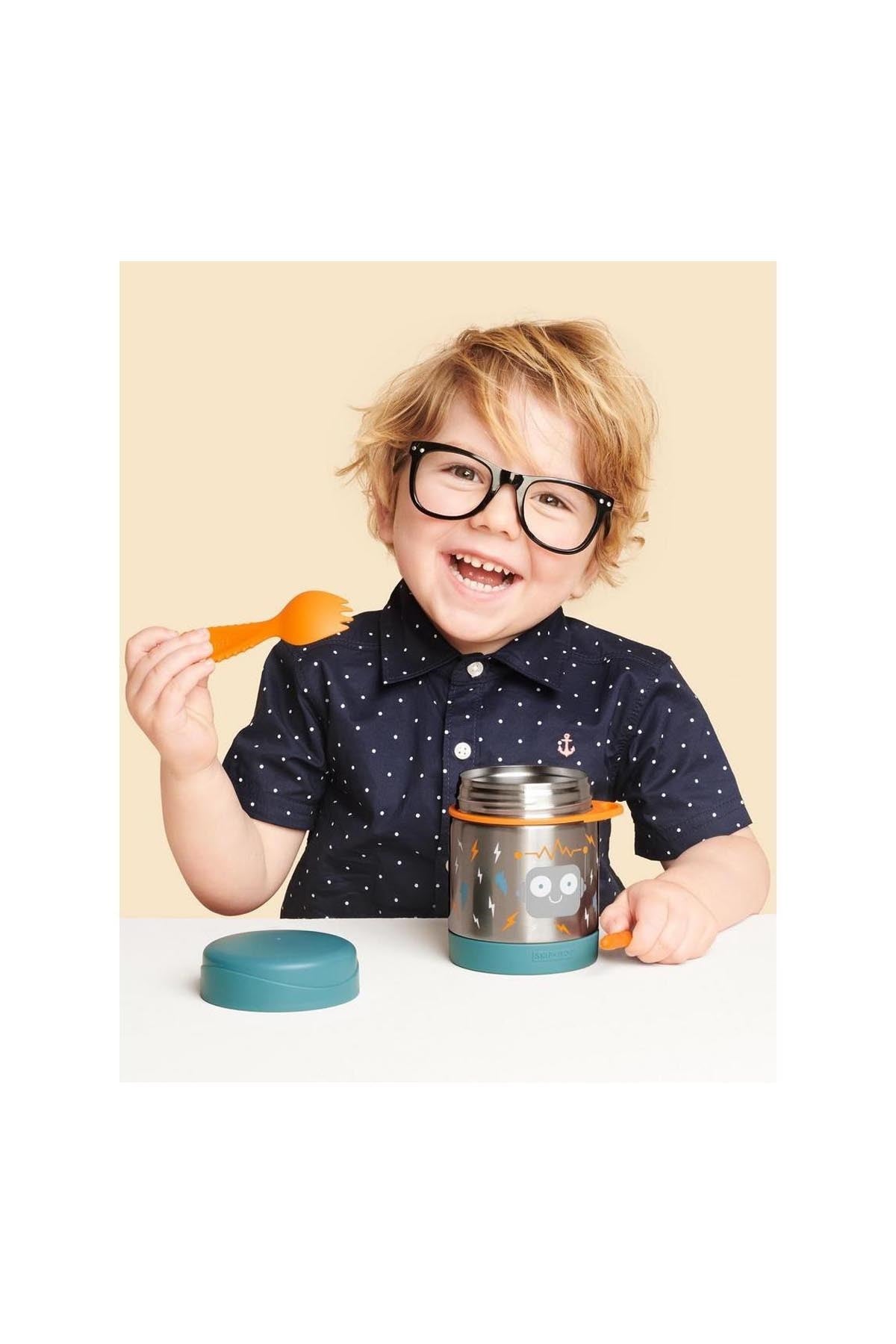 Çocuğunuzun öğünlerini her zaman taze, sıcak veya soğuk tutmak artık çok kolay! Skip Hop Spark Style Paslanmaz Çelik Termos Robot, hem eğlenceli tasarımı hem de işlevsel yapısıyla miniklerin favorisi olacak. Robot desenli modern tasarımı sayesinde sadece pratik değil, aynı zamanda şık bir kullanım da sunar. Paslanmaz çelik gövdesi sayesinde yiyeceklerinizi uzun süre ilk tazeliğinde korur. 7 saate kadar sıcak, 5 saate kadar ise soğuk tutma özelliği ile ev dışında da güvenilir bir yardımcıdır. Çocukların kolayca yemek yiyebilmesi için özel olarak tasarlanmış dahili çatal-kaşık (spork) aparatı termos ile birlikte gelir. Hafif ve kompakt yapısı sayesinde okulda, parkta ya da seyahatlerde ebeveynlerin hayatını kolaylaştırır.