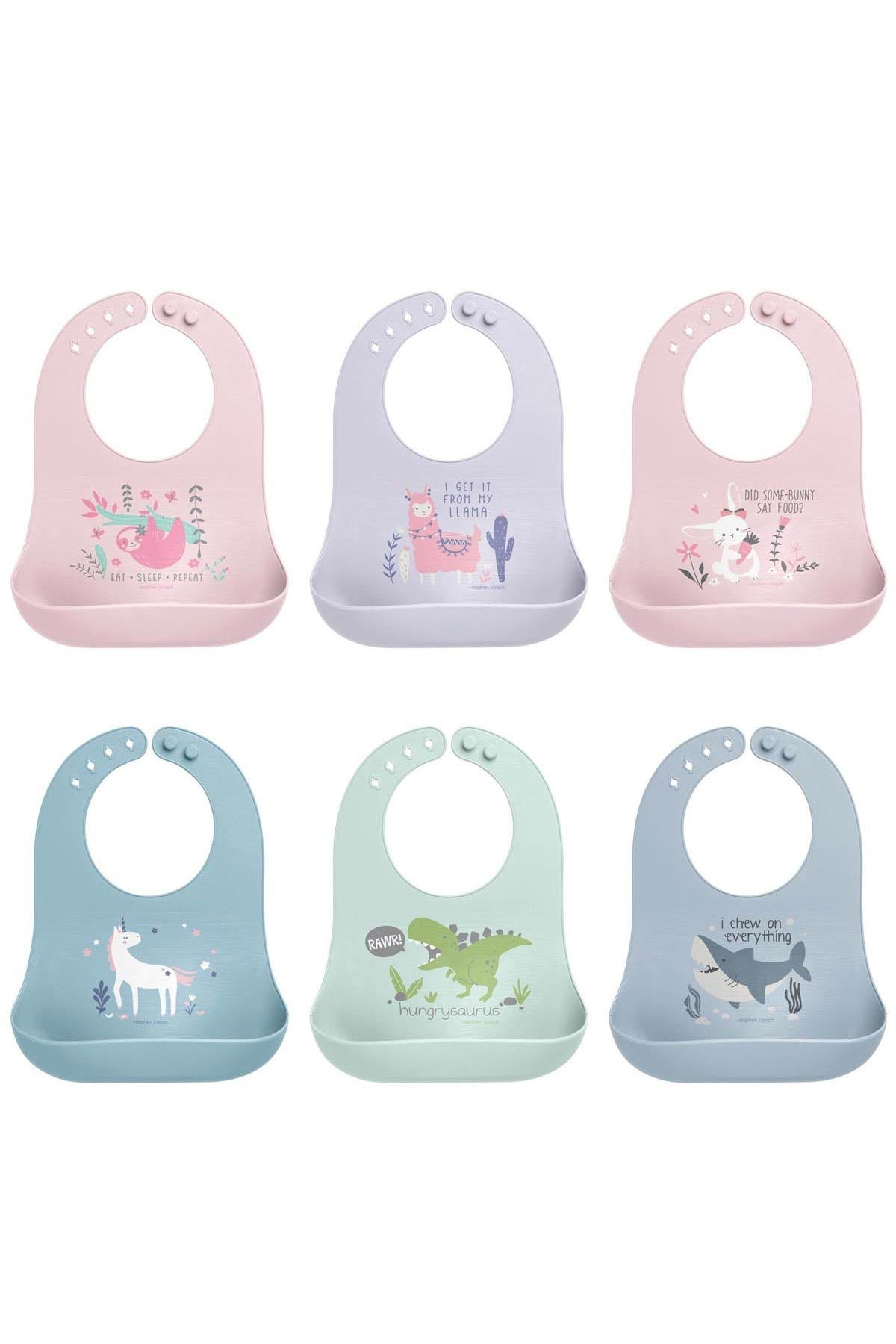 Yemek zamanı Stephen Joseph ile artık çok daha tatlı! Silikon önlüklerimiz, yiyecekleri dökülmekten koruyan bir kırıntı tutucuya sahip olacak şekilde tasarlanmıştır ve aynı zamanda oyun süresi boyunca oyuncakları tutmak için de kullanılabilir! Bu önlükler, bebeğinizin cildini korumak için hafif ve süper yumuşaktır ve en iyi yanı, bulaşık makinesinde yıkanabilir olmalarıdır! Süper yumuşak silikondan yapılmış güzel tasarımlı mama önlükleri ile yemek saatleri daha kolay ve eğlenceli!