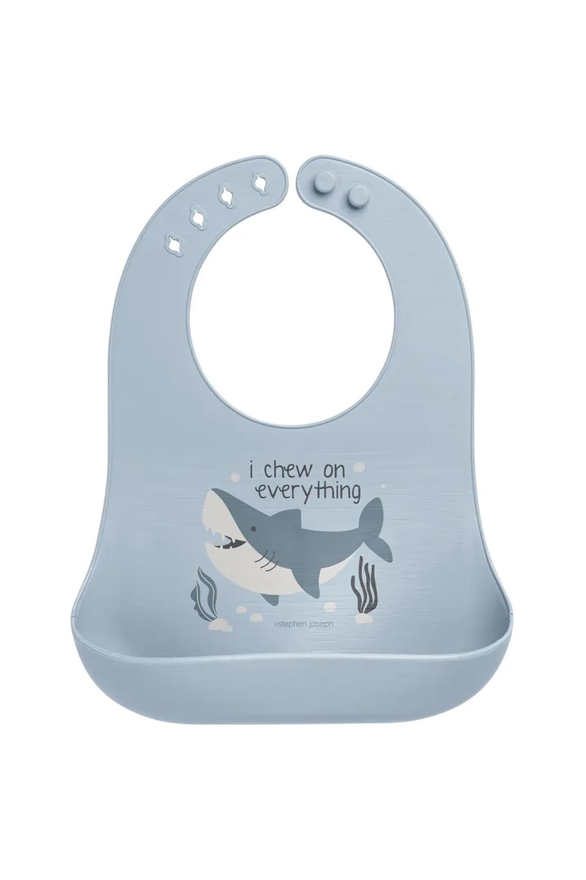 Stephen Joseph Silikon Önlük Köpek Balığı, Amerikalı Stephen Joseph markasının yeni beslenme serisinde yer alan pratik ve eğlenceli bir üründür. Gıdayla temasa uygun %100 silikon malzemeden üretilmiş olan bu önlük, yemek sırasında oluşabilecek dökülmeleri önler. Hareketli bebeklerin bile masada yediği yiyecekleri dökmeden tüketmesini sağlayan geniş ve dışa kıvrık cep yapısı, parçaları kolayca toplar.