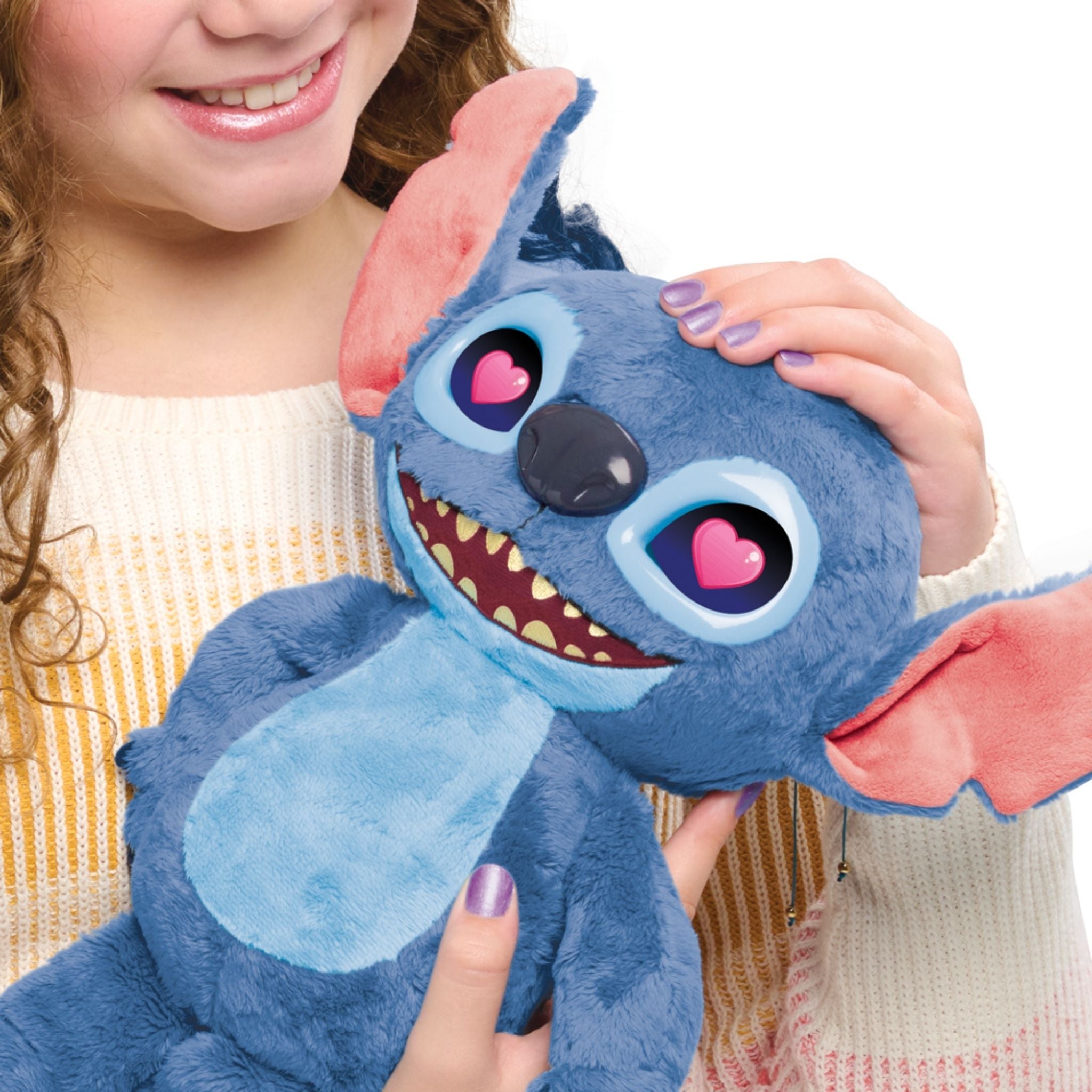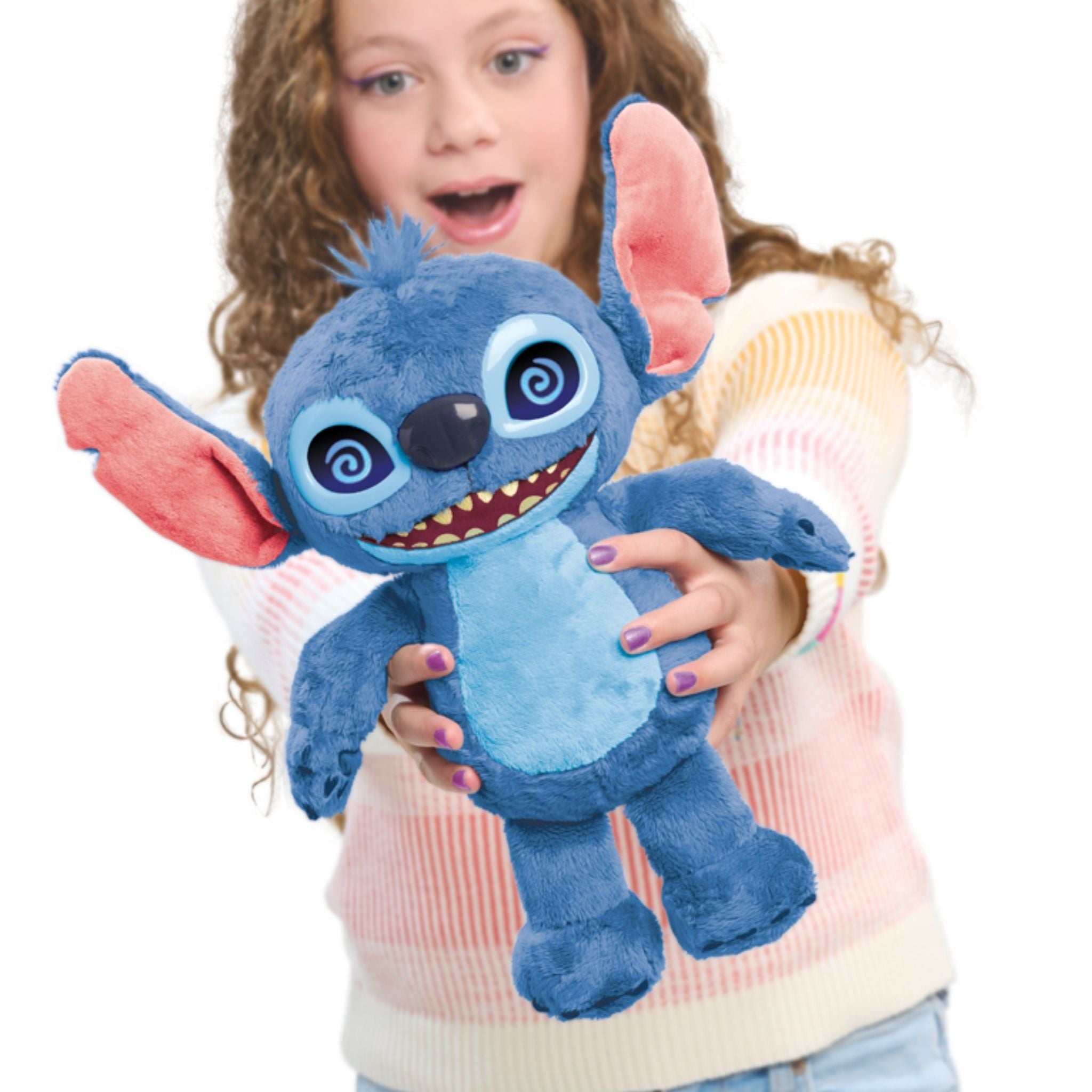 Stitch Duygular İnteraktif Peluş, Disney’nin Lilo & Stitch canlı aksiyon filminden ilham alınarak tasarlanan gelişmiş bir etkileşimli oyuncaktır. 36 cm boyundaki bu özel pelüş, LCD göz ekranları sayesinde Stitch ’in ruh halini anlık olarak ifade edebilir. Mutlu, şaşkın, uykulu, sevimli veya yaramaz… Stitch duygularını 50’den fazla ses ve tepki kombinasyonu ile dışa vurur. Yumuşacık pelüş dokusuyla dokunmaya duyarlıdır; başı okşandığında, karnına basıldığında veya hareket ettirildiğinde farklı tepkiler verir. Ters çevrildiğinde eğlenceli sesler çıkarır, sallandığında gözlerinde animasyon efektleri belirir. Hafifçe sallandığında uykuya dalması, esnemesi ve horlaması ise oyun deneyimini daha gerçekçi ve keyifli hale getirir. Stitch, gün içinde oyun arkadaşı olurken gece rutinde ise yumuşak ve duygusal bir eşlikçi haline gelir.