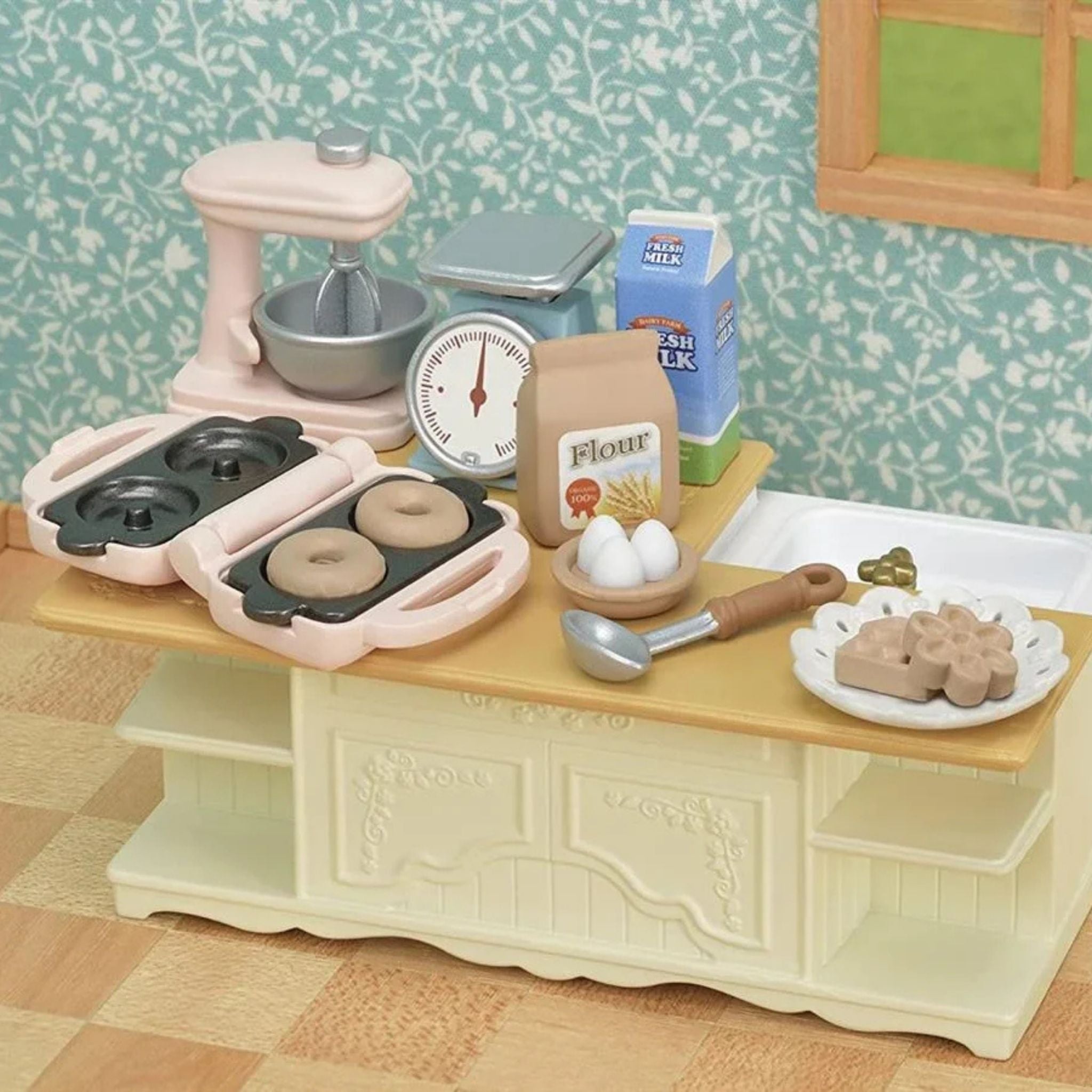 Sylvanian Families Ada Mutfak 5442, minik şeflerin hayal gücünü mutfak oyunlarıyla buluşturuyor. Sylvanian kasabasındaki aile üyeleri için özel olarak tasarlanmış bu sevimli mutfak adası, özellikle donut ve waffle yapma temalı oyunlara ilham veriyor. Set içerisinde; dönebilen mikser, yukarı-aşağı hareket eden ölçü terazisi ve değiştirilebilir kalıplarla çalışan waffle & donut makinesi gibi işlevsel parçalar yer alır. Gerçeğe uygun bu detaylar sayesinde çocuklar mutfakta geçen sahneleri eğlenceli bir şekilde canlandırabilir. Kompakt tasarımı ile diğer Sylvanian Families ev ve mutfak setleriyle uyumlu olan Ada Mutfak, ailecek geçirilen keyifli hafta sonlarını temsil eden unutulmaz hikâyeler yaratmak için mükemmel bir oyun alanıdır.