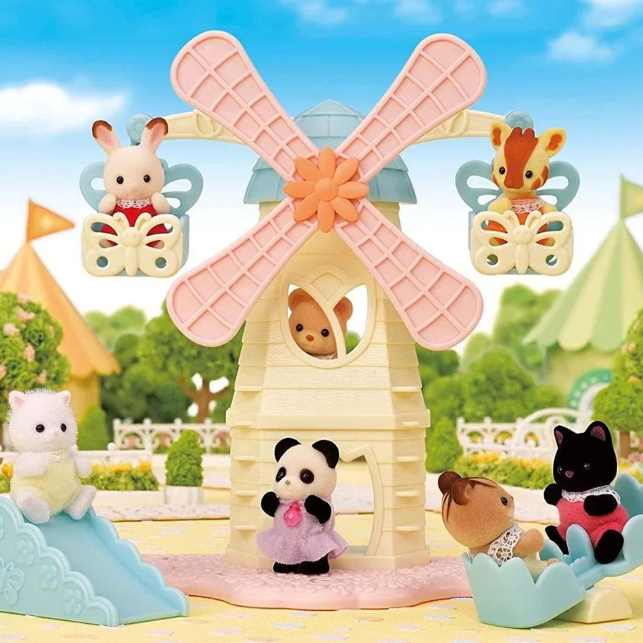 Sylvanian Families Bebek Yel Değirmeni Parkı 5526, minik Sylvanian figürler için eğlence dolu bir oyun alanı sunuyor! Renkli detaylara sahip bu sevimli oyun seti, çocukların hayal gücünü harekete geçirirken taklit ve rol yapma becerilerini de geliştiriyor. Set içerisinde dönen kanatlarıyla ilgi çeken yel değirmeni, eğlenceli bir kaydırak, denge kurmayı öğreten tahterevalli ve sevimli İran Kedi Bebek figürü yer alıyor. Minikler bu set ile park oyunlarını canlandırabilir, bebek figürleriyle yeni maceralar yaratabilirler. Diğer Sylvanian Families bebek figürleriyle uyumlu olarak kullanılabilen bu set, hem tek başına hem de diğer park temalı ürünlerle birlikte genişletilebilir.