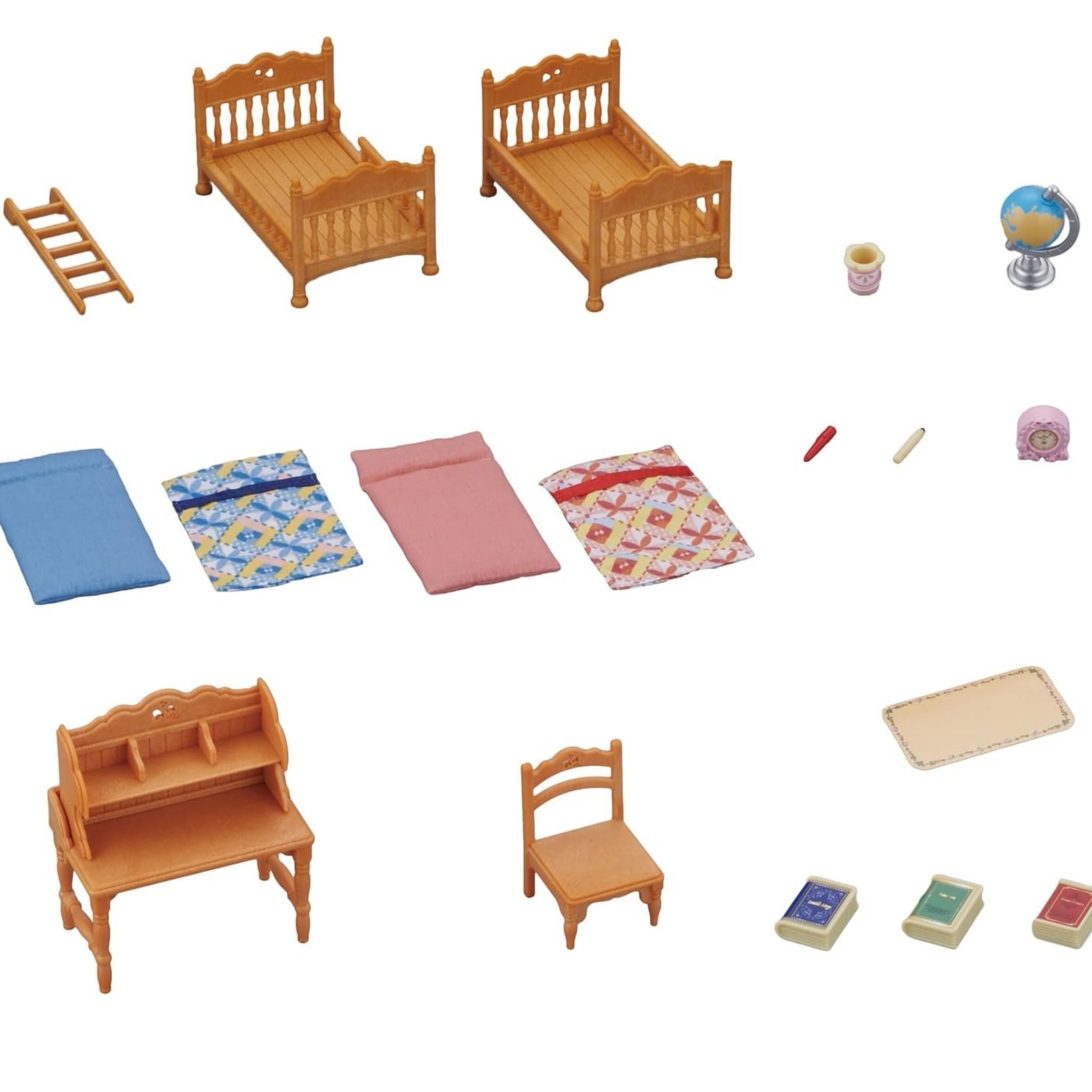 Sylvanian Families dünyasına yeni bir dokunuş katmak için mükemmel bir set olan Çocuk Yatak Odası Takımı, çocuklarınızın hayal gücünü geliştirirken eğlenceli vakit geçirmelerini sağlar. Bu şık yatak odası seti, ranza olarak kullanılabilen yataklar ve çalışkan Sylvanian çocukları için bir çalışma masası ile tamamlanmıştır. Sylvanian Families Çocuk Yatak Odası Takımı, kardeş paylaşımı ve yaratıcı hikâye anlatımı için ideal bir oyun setidir. Çocuklarınızın hayal gücünü geliştirmek için bu seti koleksiyonunuza ekleyin!