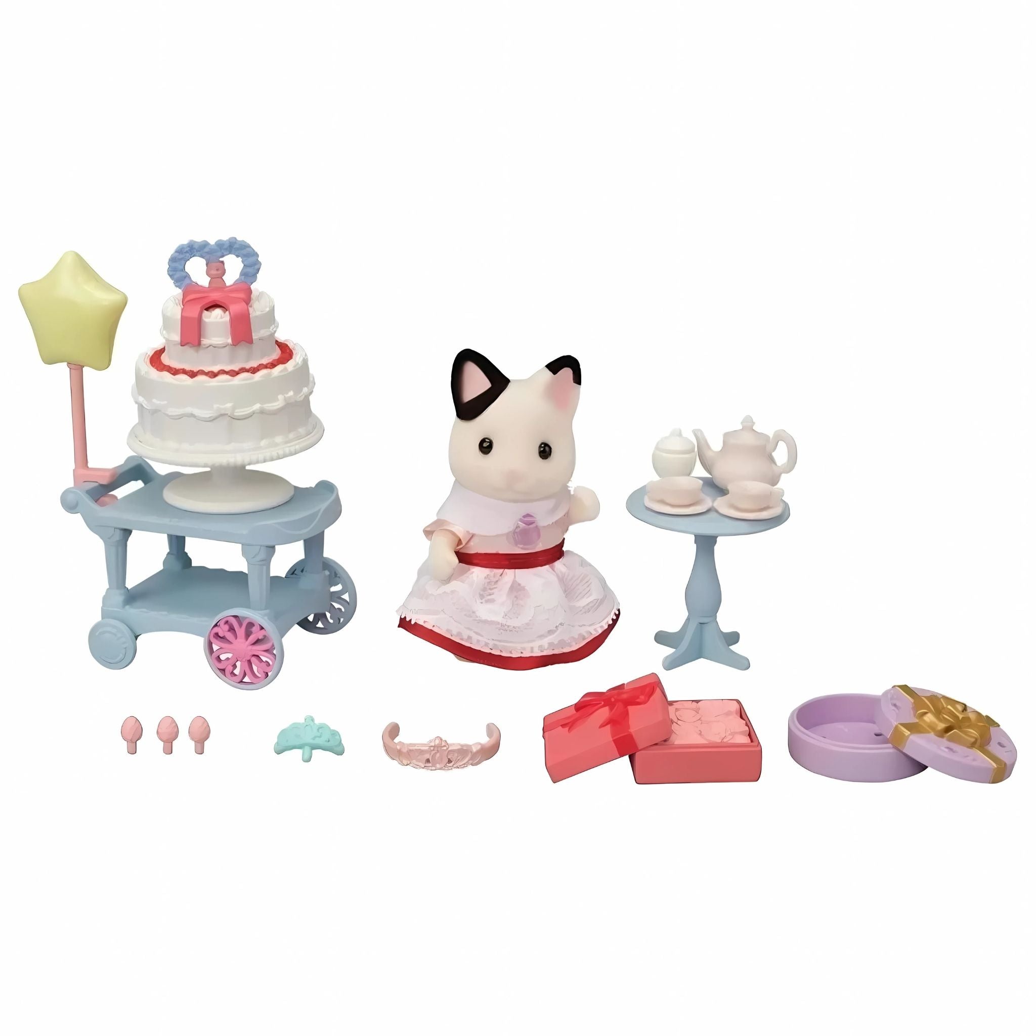 Sylvanian Families Parti Zamanı Oyun Seti, çocukların hayal güçlerini kullanarak eğlenceli parti oyunları oynamalarını sağlar. Smokin Kedi Kız, şık bir parti elbisesiyle birlikte gelir ve set, parti atmosferini en iyi şekilde yansıtan çeşitli aksesuarlarla donatılmıştır. Çift katlı kek, çiçekli pastalar ve çay takımları gibi detaylarla set, çocukların yaratıcılıklarını geliştirmelerine yardımcı olur. Kıyafetleri çıkarılabilir ve set, diğer Sylvanian Families setleriyle birleştirilerek daha büyük ve eğlenceli partiler düzenlenebilir.