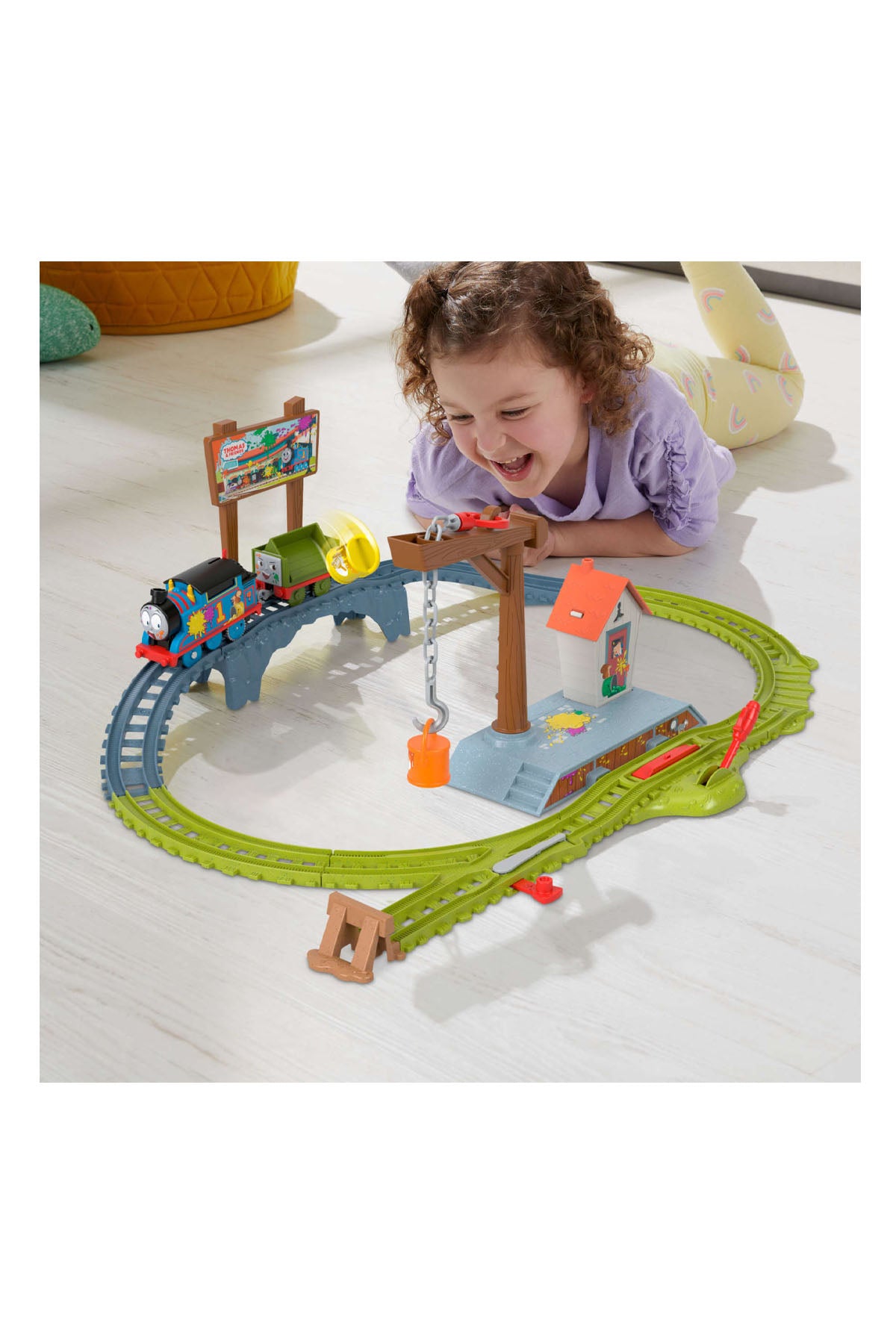 Çocuklar, Fisher Price'ın Thomas ve Arkadaşları motorlu tren ve ray seti ile iyi arkadaşları Thomas'ı Wayland İstasyonu'na götürerek boya alıp teslim edebilirler. Thomas'ı pist boyunca ilerletmek için motorun üstündeki düğmeyi çevirin. Unutmayın! Thomas, Trouble Truck'ı köprünün üzerinden çekerken boya kutuları sallanır ve devrilerek dökülür.
