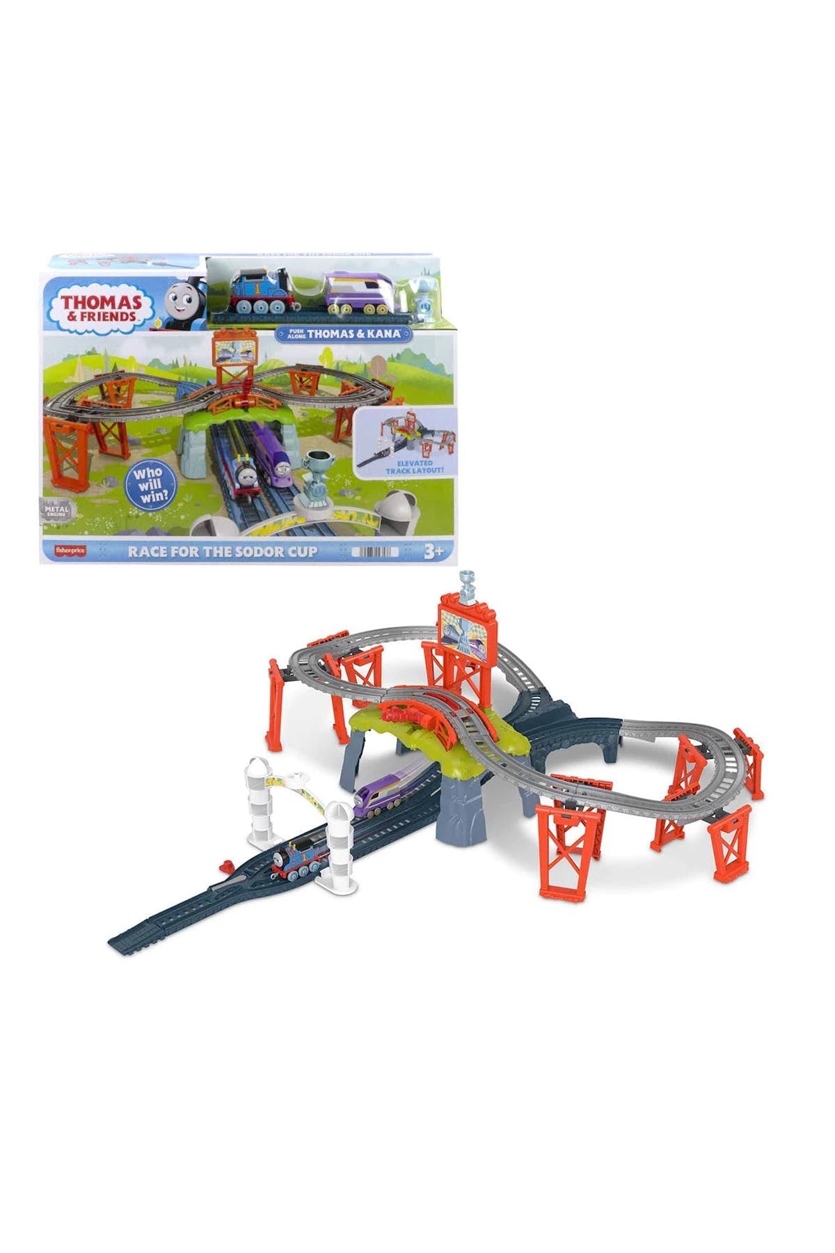 Thomas ve Arkadaşları'nın sunduğu bu tekerlekli tren ve pist setiyle çocuklar, Thomas ve Arkadaşlar çizgi filmindeki efsane Sodor Kupası yarış heyecanını tekrar yaşayacak! Çocuklar, Thomas ve Kana metal trenleri başlangıç kapılarına yerleştirebilir, ardından kolu çekip iki arkadaşın Cannonball Virajı boyunca hızla yarışıp bitiş çizgisine varmasını sağlayabilir. Pist seti, dostça gerçekleşen bu kıyasıya rekabete bambaşka eğlenceler katan virajlar ve dolambaçlı yollarla doludur. Bitiş çizgisine ilk kim ulaşacak ve kupayı kazanacak? Thomas ve Arkadaşları tekerlekli tren ve pist seti, Thomas ve dostu Kan ile başa baş yarış eğlenceleri sunuyor. Çocukların kolu indirip kaldırarak kontrol edebileceği lokomotifler, pist boyunca yarışıp Sodor Kupası'nı kazanabilmek için bir an önce bitiş çizgisine ulaşmaya çalışıyor.