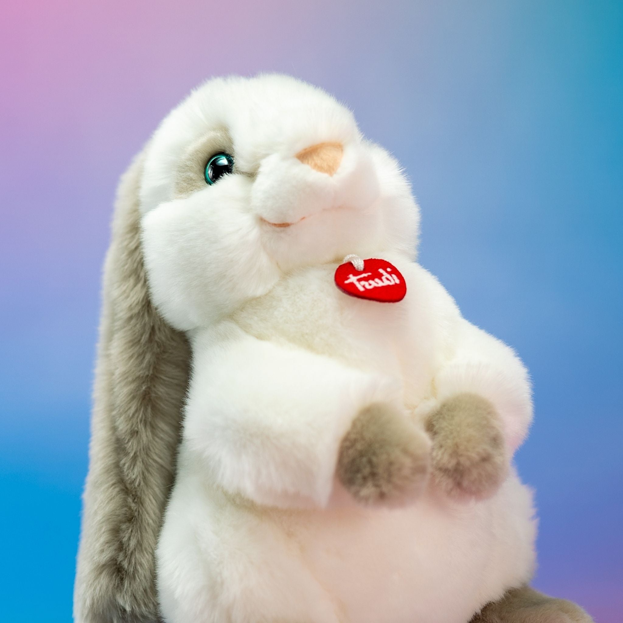 Trudi Rabbit Clemente, sevimliliği ve yumuşacık dokusuyla çocukların vazgeçilmez peluş oyuncakları arasında yer alır. Gerçek tavşanlardan ilham alınarak tasarlanan bu özel model, Trudi’nin geleneksel İtalyan işçiliği ve zarif detaylarıyla hayat bulmuştur. Yuvarlak vücut yapısı, uzun kulakları ve tatlı yüz ifadesi ile Clemente, çocukların sarılmak isteyeceği sıcak bir oyun arkadaşıdır.