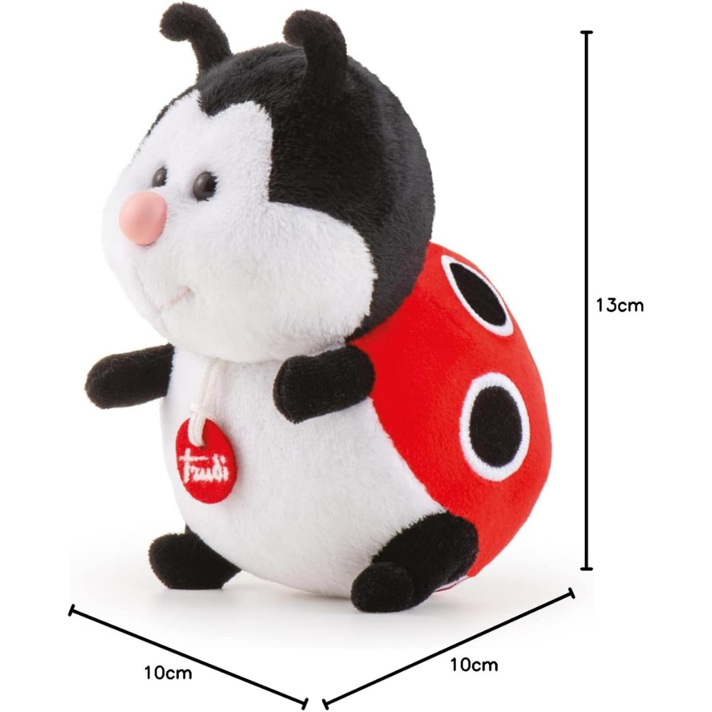 Trudi Trudino Ladybug Peluş, sevimli uğur böceği tasarımı ve yumuşacık dokusuyla bebeklerin ilk oyuncaklarından biri olmaya uygun özel bir peluş modeldir. Canlı renkleri ve dost canlısı görünümü sayesinde çocukların ilgisini çekerken, güven veren yapısı ile konforlu bir oyun arkadaşı sunar. Trudi’nin sevilen Trudino koleksiyonuna ait olan bu model, doğumdan itibaren güvenli kullanım için tasarlanmıştır. Kompakt boyutu sayesinde kolay taşınabilir yapıya sahiptir ve çocuk odalarında dekoratif bir aksesuar olarak da kullanılabilir. 1954 yılından bu yana İtalyan tasarım geleneğini sürdüren Trudi, kalite, estetik ve güvenlik standartlarını bir araya getirerek peluş oyuncak dünyasında güçlü bir marka kimliği oluşturmuştur.