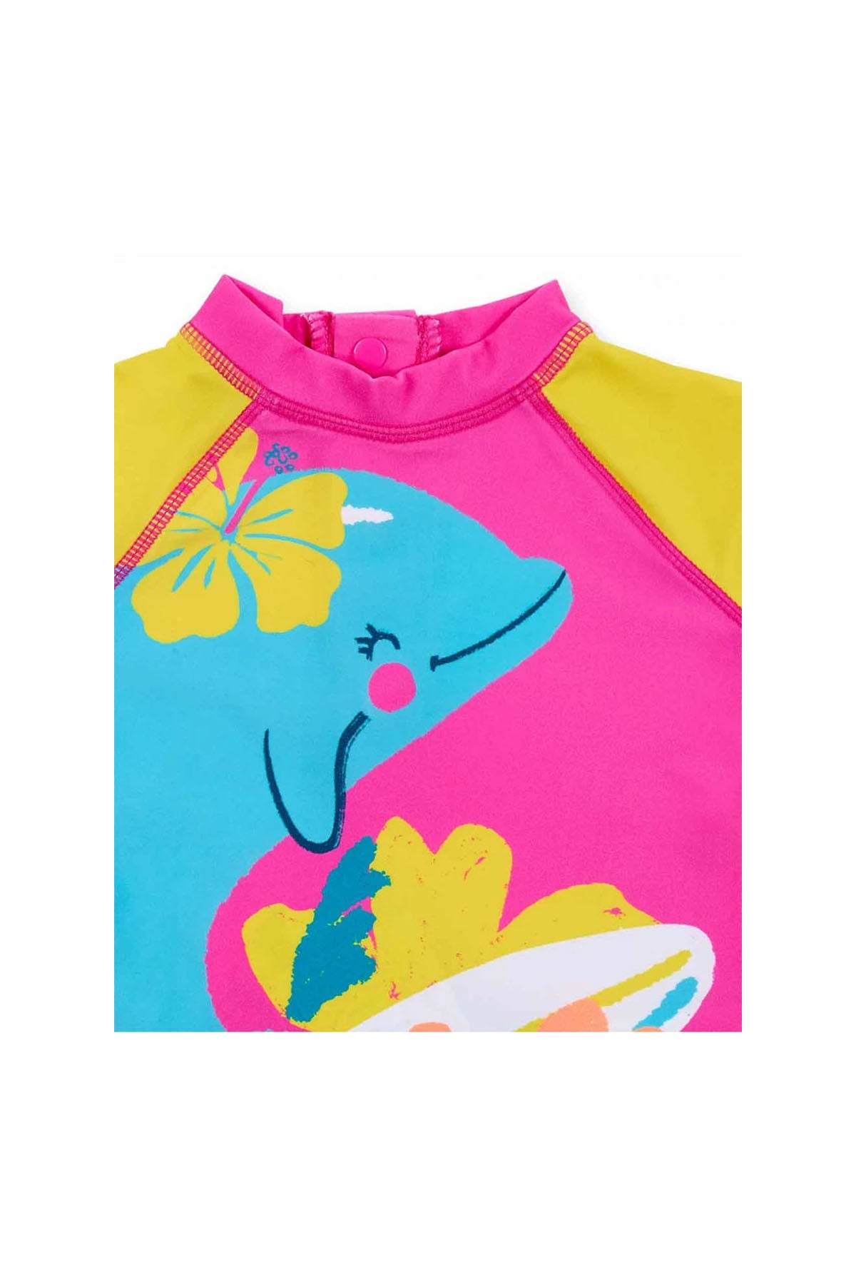 Yaz eğlencesi şimdi çok daha güvenli! Tuc Tuc Güneş Koruyucu Mayo T-shirt, miniklerin hassas cildini güneşin zararlı UV ışınlarına karşı korurken, onlara konforlu ve şık bir kullanım sunar. Fuşya rengiyle dikkat çeken bu mayo t-shirt, plajda, havuzda ya da su parkında rahatça kullanılabilir. Yumuşak ve nefes alabilir kumaşı sayesinde terletmez, gün boyu konfor sağlar.