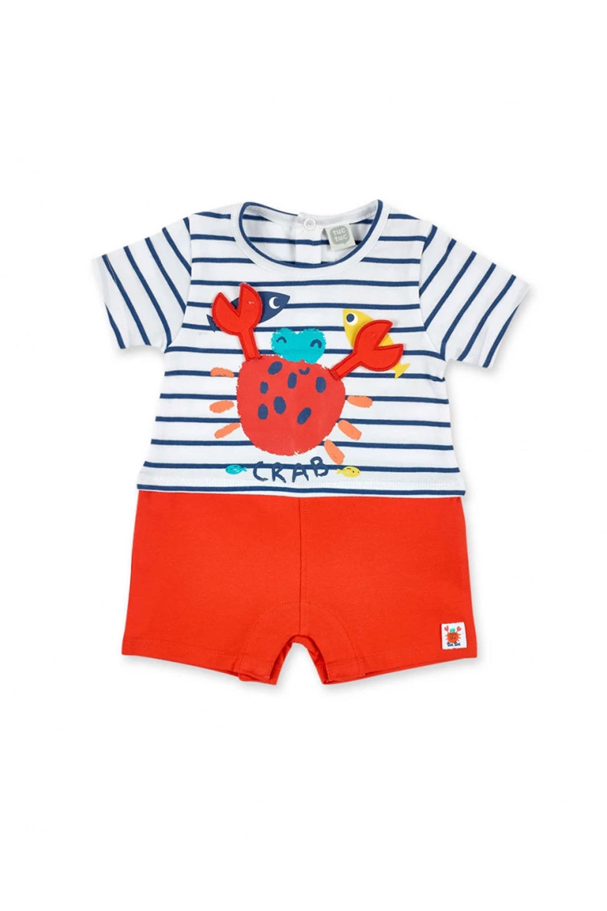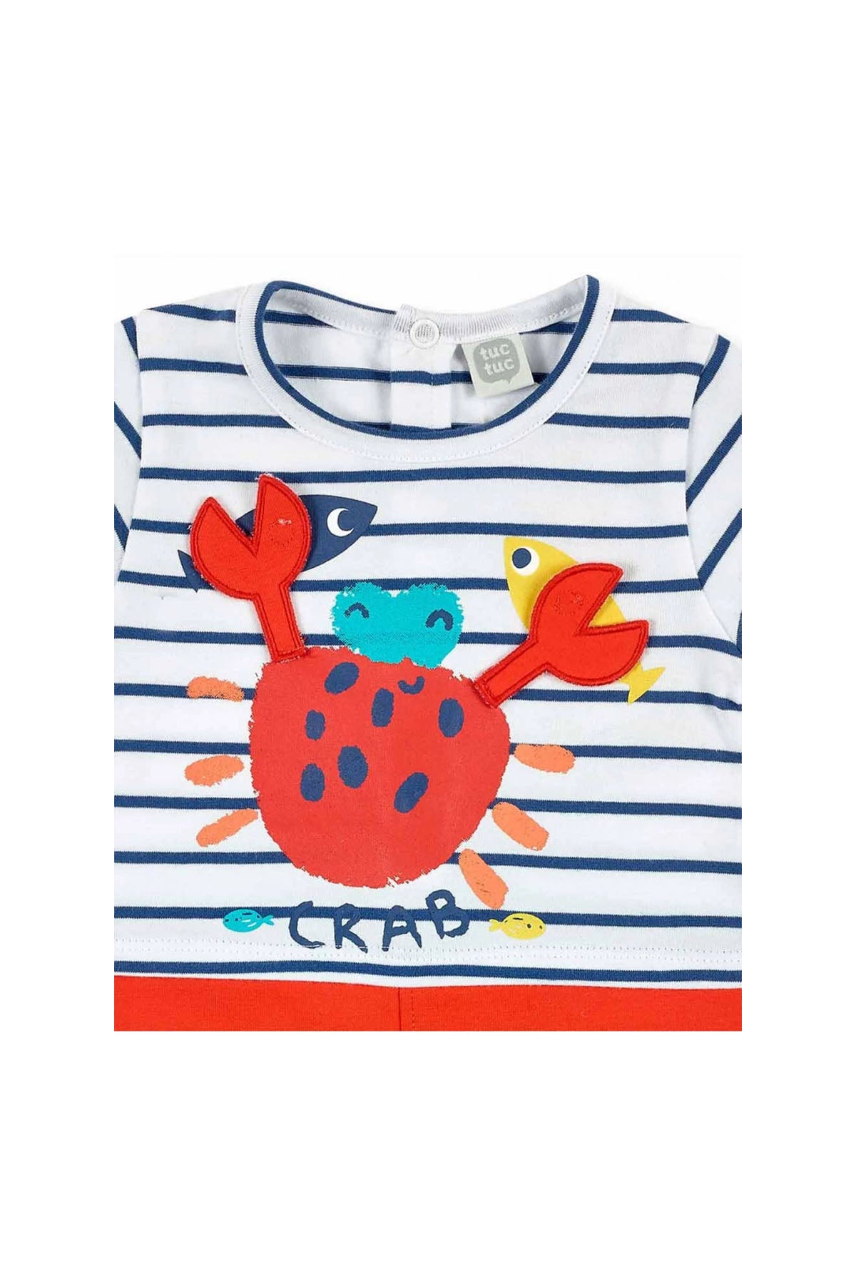 Yazın enerjisini yansıtan deniz temalı desenleriyle dikkat çeken Tuc Tuc Tulum Kırmızı Mavi Crab, bebeğinizin hem rahat etmesini hem de şık görünmesini sağlar. Yengeç figürüyle süslenen bu tulum, hafif ve nefes alabilen pamuklu kumaşı sayesinde yaz aylarında konforlu kullanım sunar.