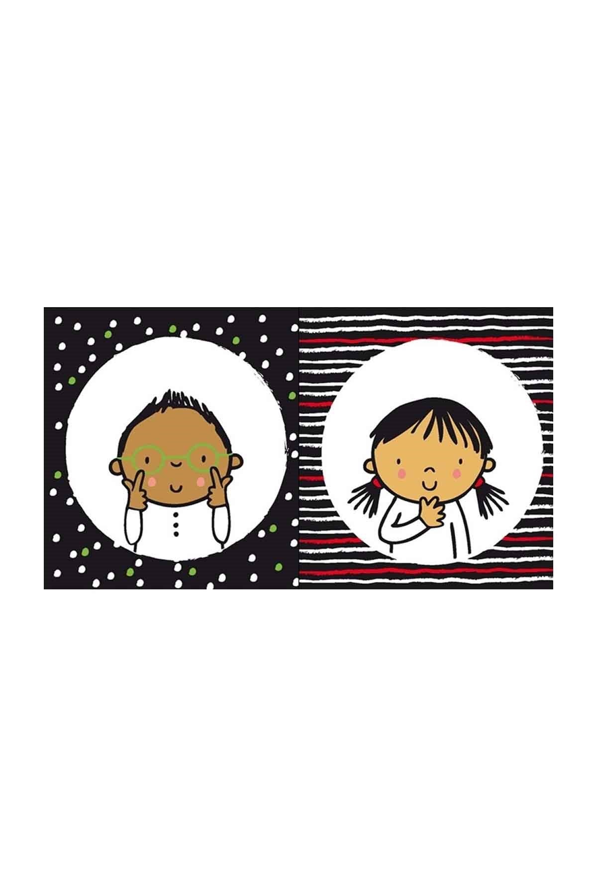 A delightful first book with high-contrast black and white illustrations showing facial features, including eyes, ears, freckles and glasses. With its padded cover and thick board pages, this book is perfect for sharing or can be propped up for babies to see by themselves.