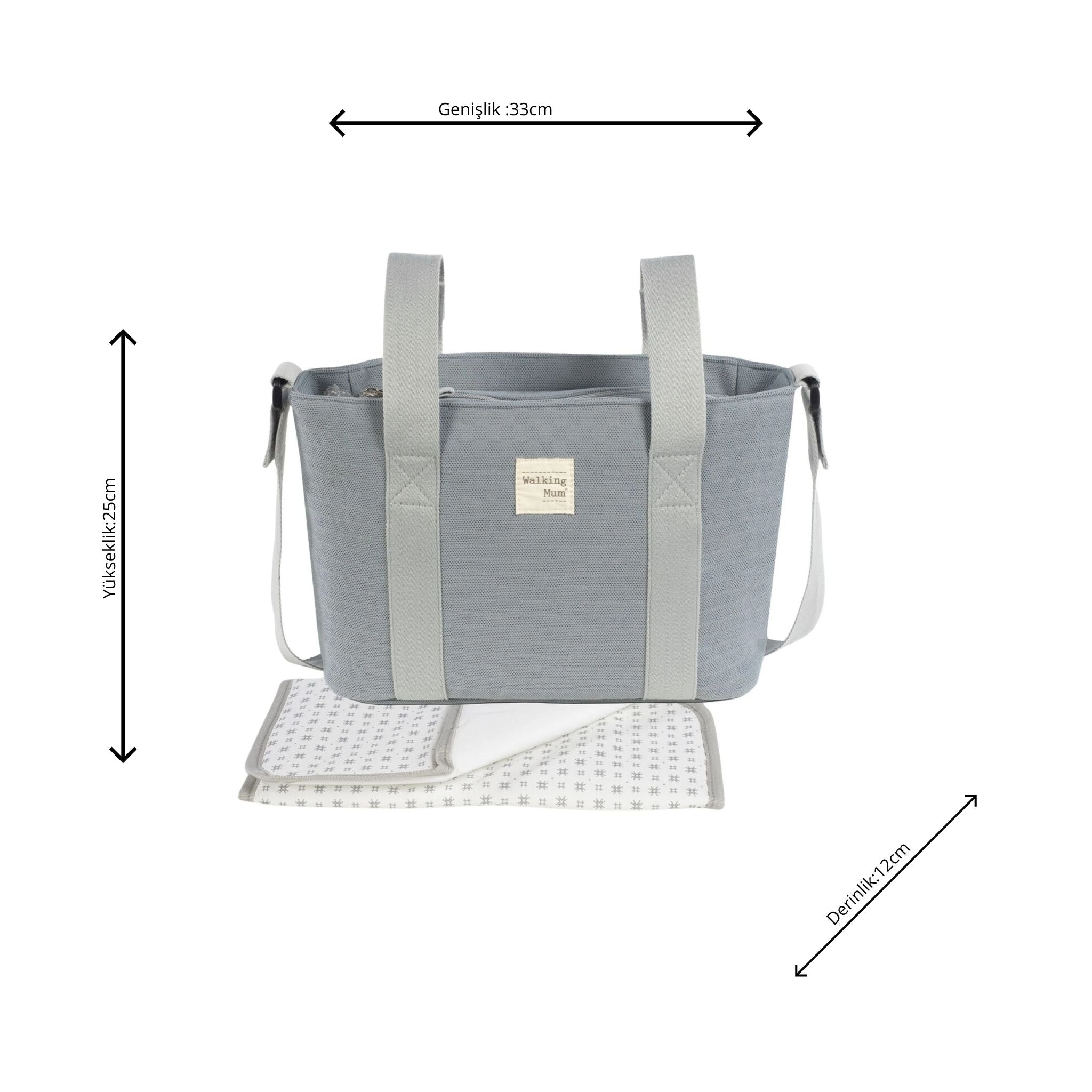 Walking Mum Eco Mum Crossbody Bakım Çantası Cloud; modern ebeveynlerin çevreye duyarlı tercihlerine hitap eden yenilikçi bir üründür. rPET teknolojisiyle üretilen bu çanta, geri dönüştürülmüş plastik şişelerden elde edilen malzemelerle hem doğayı korur hem de annelere pratiklik kazandırır. Geniş iç hacmi ve fonksiyonel cepleri sayesinde bebek bakımında ihtiyacınız olan her şeyi tek bir çantada taşıyabilirsiniz. İç kısmında bulunan su geçirmez plastik cep, ıslak giysileri ayrı tutmanıza yardımcı olurken, termal yan cep biberonları uzun süre ideal sıcaklıkta saklamaya olanak tanır. Ayrıca set içerisinde uyumlu bir alt değiştirme matı da bulunur. Çantayı omzunuzda rahatça taşıyabileceğiniz uzun ayarlanabilir askısı ve bebek arabalarına kolayca sabitlenebilen iki kısa sapı mevcuttur. Hafif, dayanıklı ve silinebilir yapısı sayesinde gün boyu konfor sunar. Eco Mum Cloud çapraz askılı bebek çantası, yalnızca bir bakım çantası değil; aynı zamanda çevreci bir yaşam tarzının da ifadesidir. Günlük kullanım için ideal olan bu ürün, hem işlevselliği hem de sade şıklığıyla ön plana çıkar.