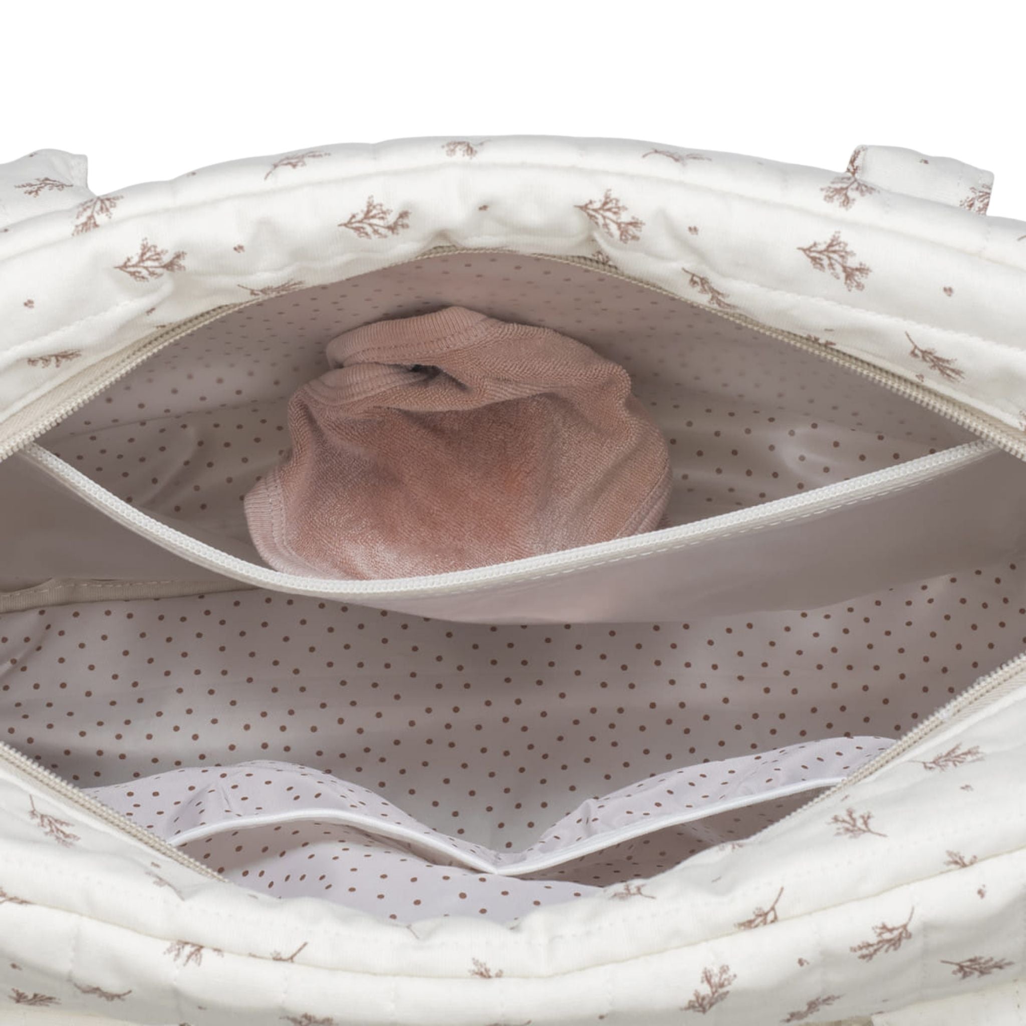 Bebek arabasına bağlanan saplardan, termal biberon cebine; fermuarlı dış cepten su geçirmez iç bölmeye kadar her şey düşünülmüş. Bu çanta ile şehirde ya da seyahatte ‘eksik bir şey varmış’ demek imkansız