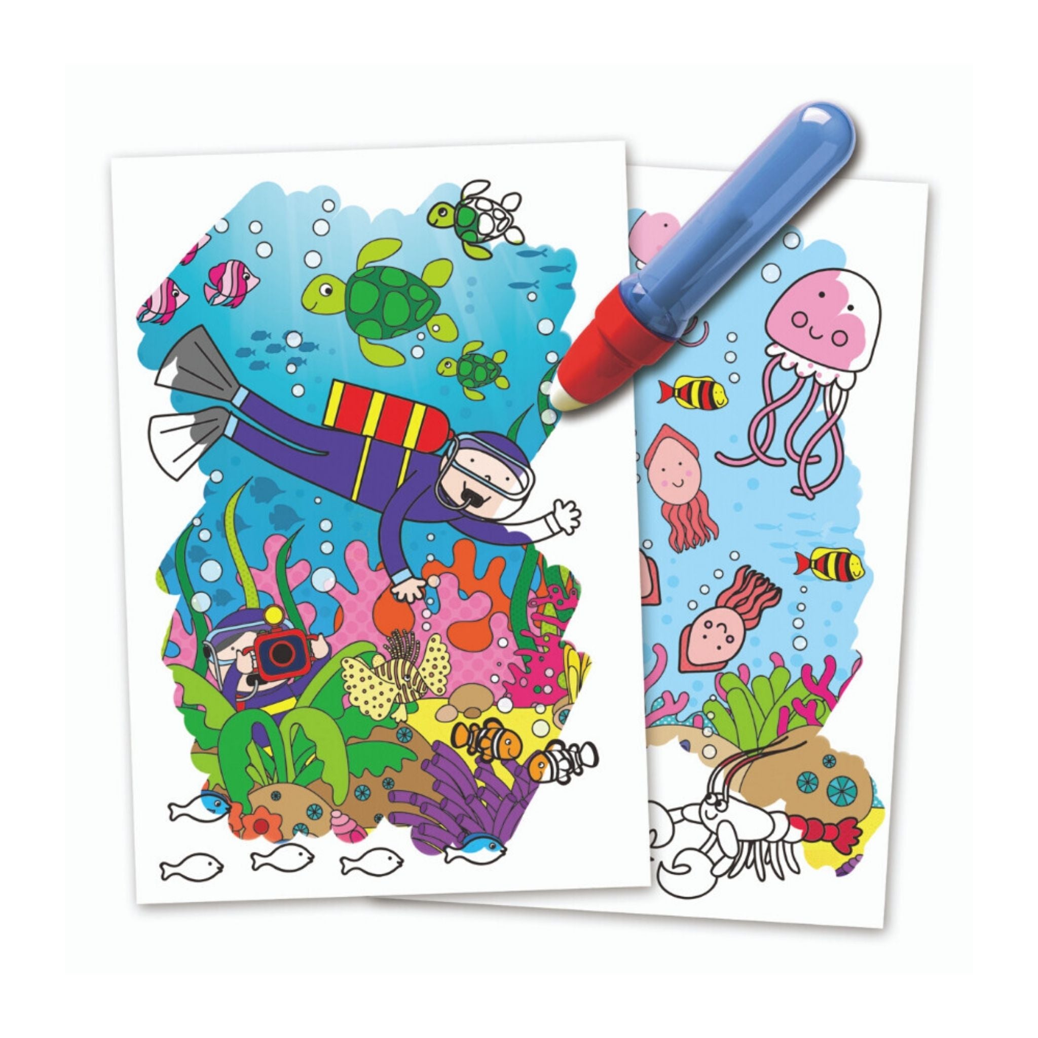 Galt Sihirli Kitap Denizin Altında 3 Yaş+, çocukları deniz altının renkli ve merak uyandıran dünyasıyla buluşturan, suyla çalışan ve tekrar kullanılabilen özel bir boyama kitabıdır. Kitapla birlikte kullanılan sihirli kalem suyla doldurularak siyah beyaz sayfalar üzerinde gezdirildiğinde deniz canlıları, su altı sahneleri ve gizli detaylar renkli şekilde ortaya çıkar. Sayfalar kurudukça tekrar siyah beyaz haline döner ve yeniden kullanılabilir. Deniz altı teması sayesinde çocukların hayal gücü desteklenirken dikkat, gözlem ve öğrenme becerilerinin gelişimine katkı sağlar. Evde ve seyahatlerde keyifle kullanılabilecek ideal bir aktivite sunar.