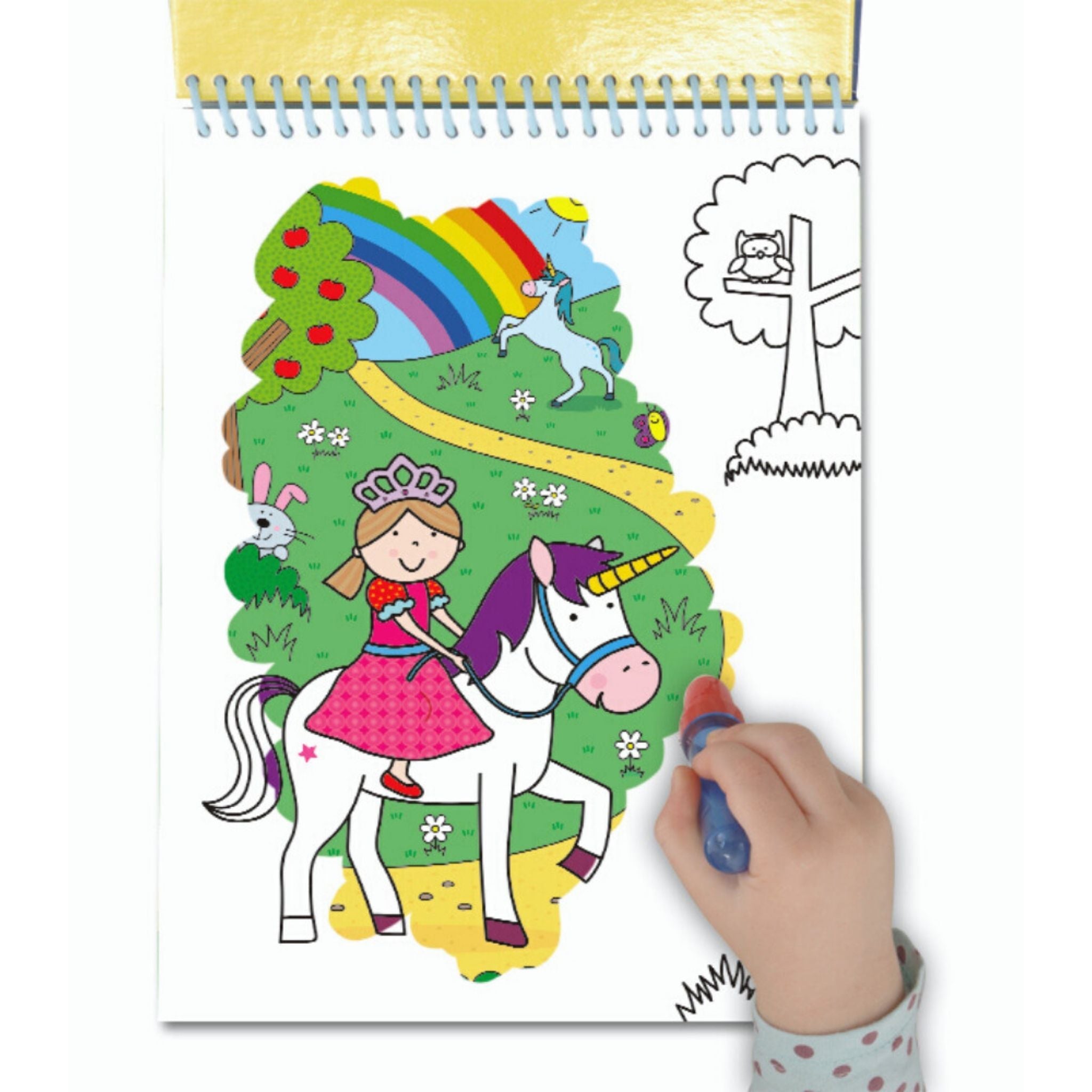 Galt Water Magic Sihirli Kitap Unicorns, çocukları unicorn temalı büyülü bir dünyaya davet eden, suyla çalışan ve tekrar tekrar kullanılabilen özel bir boyama kitabıdır. Galt tarafından geliştirilen bu eğlenceli aktivite kitabı, çocukların hayal gücünü desteklerken öğrenme sürecini keyifli hale getirir. Sihirli kalemle yapılan boyama sayesinde çocuklar her kullanımda yeni bir keşif yaşar ve boyama deneyimini güvenli bir şekilde deneyimler. Kitap üzerinde yer alan özel kalem su ile doldurularak kullanılır. Siyah beyaz sayfalar üzerinde gezdirildiğinde Unicornlar ve gizli detaylar rengarenk şekilde ortaya çıkar. Sayfalar kuruduğunda yeniden siyah beyaz haline döner ve kitap tekrar kullanılabilir. Hafif ve kompakt yapısı sayesinde evde, seyahatte ve dış mekânlarda çocukların keyifle vakit geçirmesine olanak tanır.