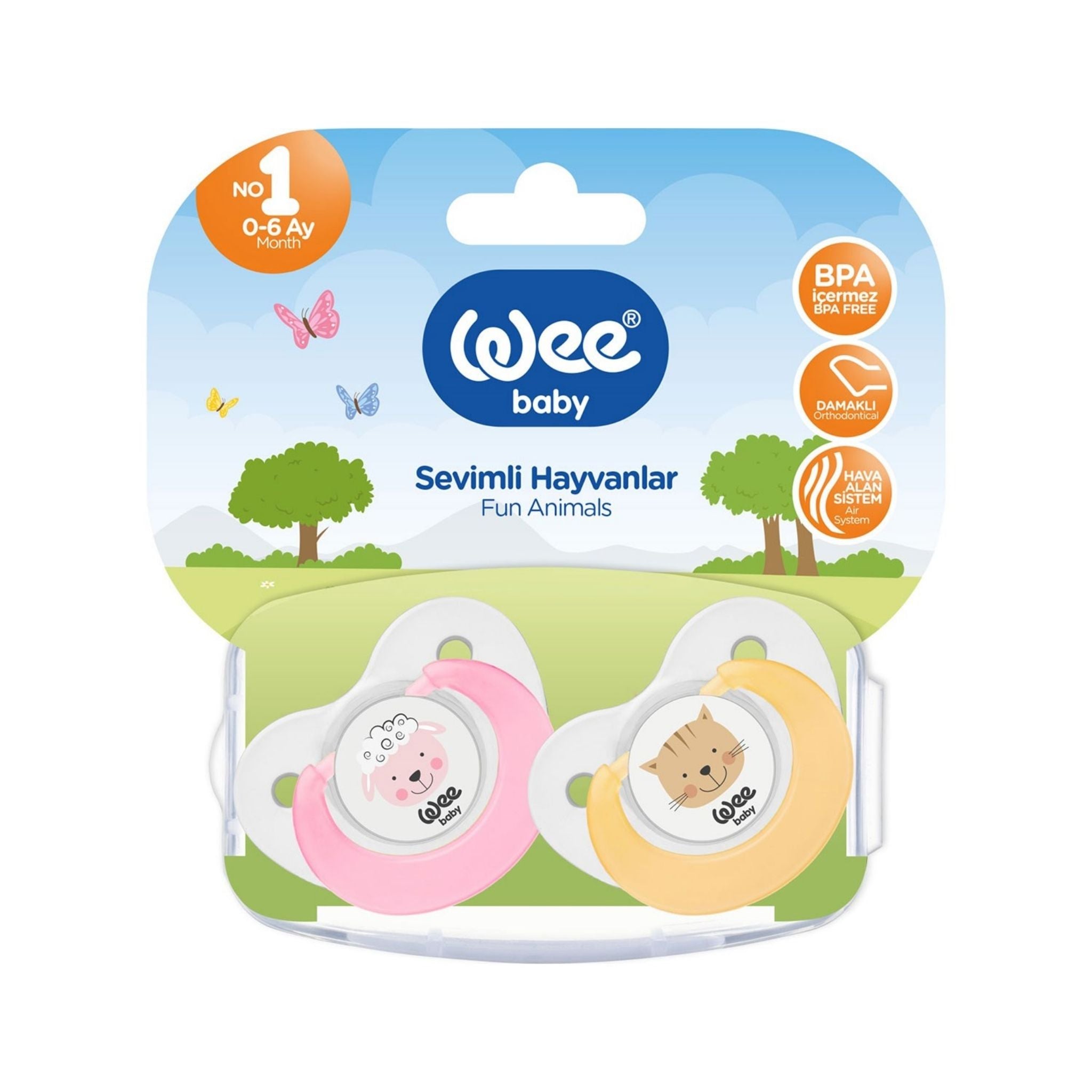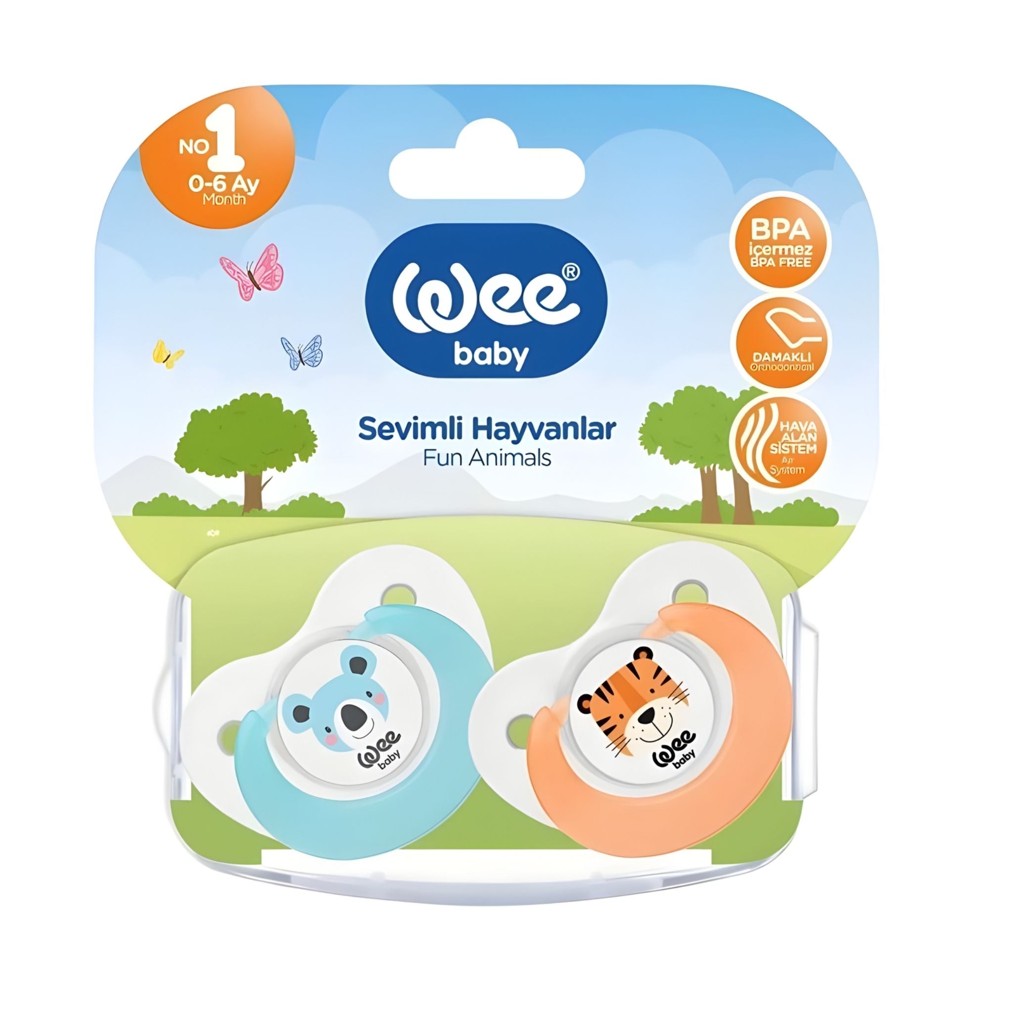 Wee Baby 2’li Sevimli Hayvanlar Emzik, anne göğsüne yakın yumuşaklıkta silikon ucu ile bebeğe doğal bir emme deneyimi sunar. Emzik kullanılmadığında koruyucu kutusunda saklanarak hijyenik bir kullanım sağlar.