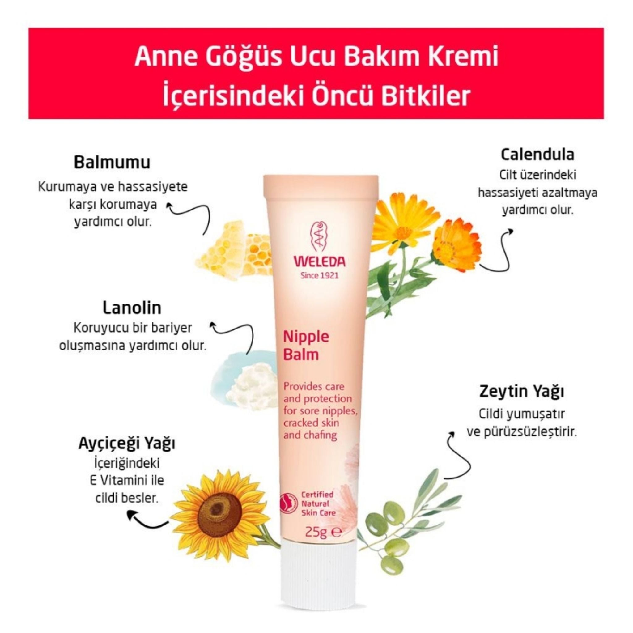 Emzirme döneminde hassaslaşan cilt için özel olarak geliştirilen Weleda Organik Göğüs Ucu Bakım Kremi, %100 doğal içerikleriyle annelere güvenli ve etkili bir bakım sunar. İçeriğinde bulunan organik aynısefa özü, lanolin, zeytinyağı ve balmumu, cildi nemlendirerek yatıştırır ve korunmasına yardımcı olur. Kokusuz yapısıyla bebeğinizin emme konforunu etkilemeden kullanılabilir. Mineral yağ, renklendirici ve yapay katkı maddeleri içermez. Doğal yollarla emzirme sürecini desteklemek isteyen anneler için ideal bir bakım ürünüdür.