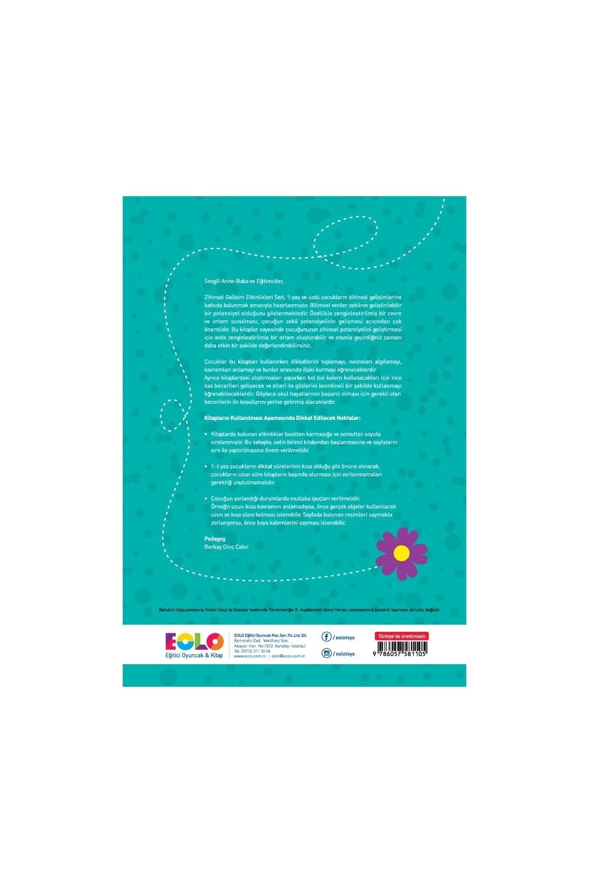 Eolo Zihinsel gelişim etkinlik kitabı amacı, kavram gelişimini destekleyerek kelime dağarcığını ve ifade becerilerini güçlendirmek, bilişsel gelişimi desteklemek, Dikkatini odaklama ve sürdürme becerisini desteklemek, yönerge alma ve dinleme becerilerini geliştirmek, sayı kavramını kazandırmak, 1’den 10’a kadar rakamları tanıtmak, muhakeme ve problem çözme becerilerini geliştirmek, el-göz koordinasyonunu geliştirmek, ince motor becerilerini desteklemek, EQ ve IQ gelişimine destek olmak. Eğitici kitaplar ile çocuklar eğlenerek öğreniyor!