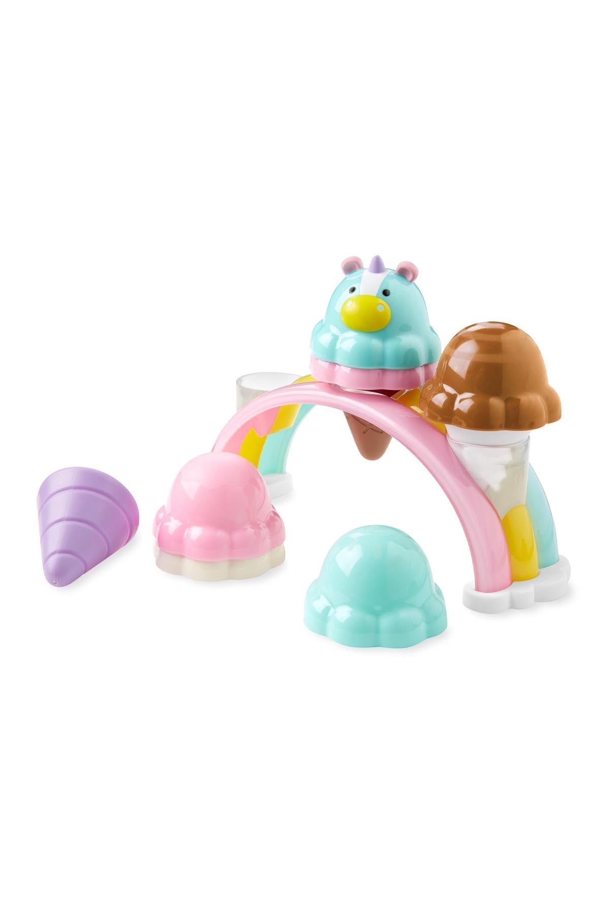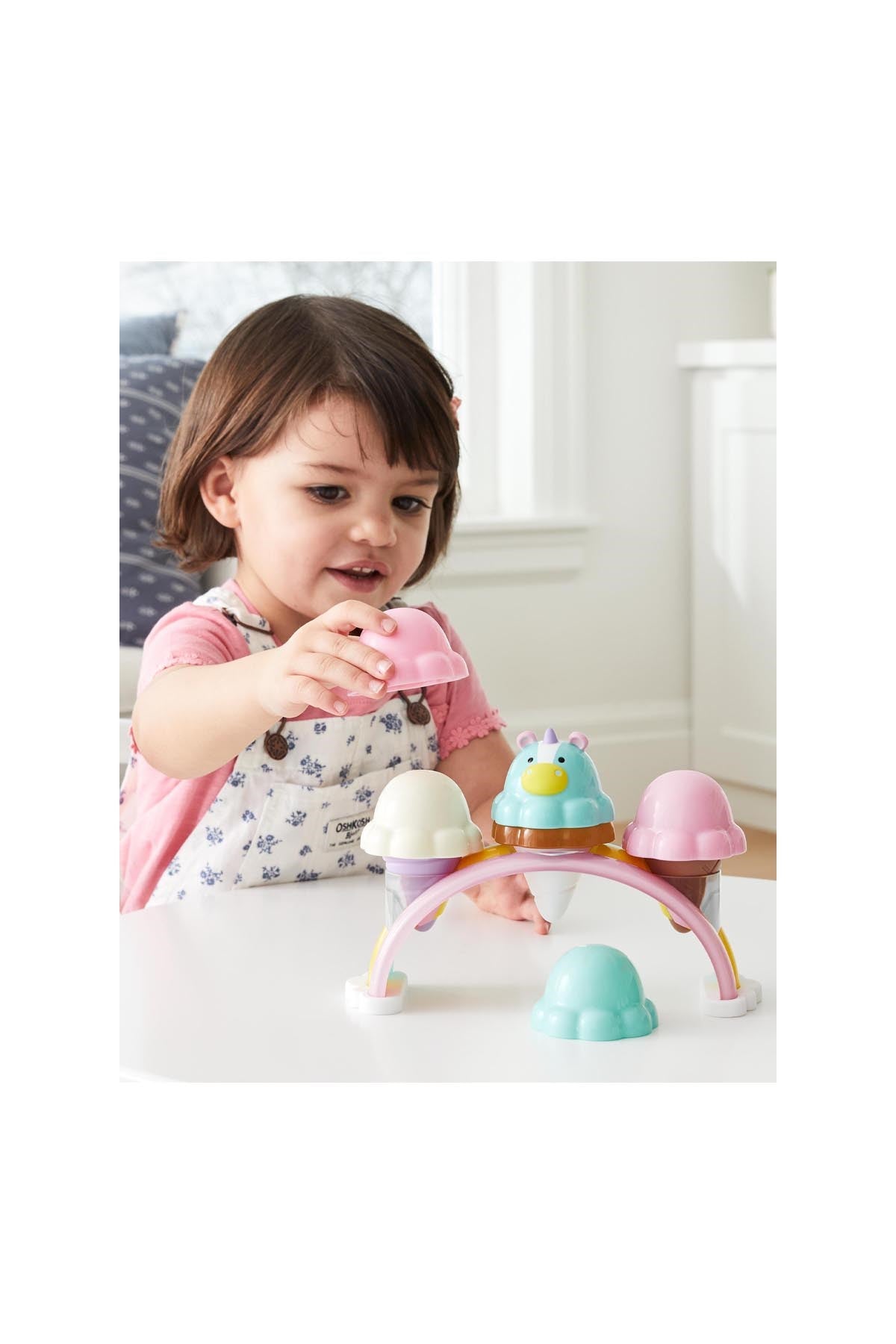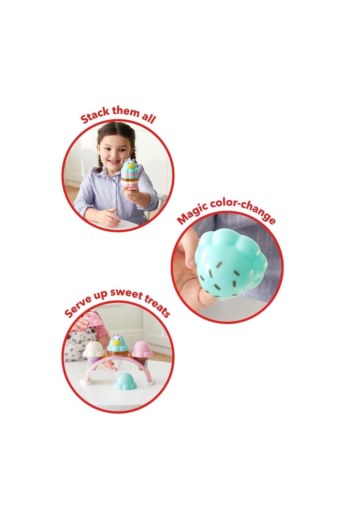 Bir kepçe mi, iki mi? Altıya ne dersin! Çocuklar bu süper tatlı dondurma seti ile çok sayıda harika külah tatlısı yaratmaya bayılacak. Skip Hop tasarımlı sihirli renk değiştiren malzemelerle (serpmeler, kıvrımlar ve daha fazlası) buz gibi suya daldırıldığında çocukların keşfetmesi için çok eğlenceli bir fırsat olacak! Üç külah, ayrıca sevimli bir tek boynuzlu at kepçesi ve gökkuşağı servis standı, bu 10 parçalı seti büyülü bir rol yapma oyununun olmazsa olmazı yapıyor. Ayrıca bu ilkyaş oyuncakları çocukların birçok gelişim alanlarının aktif şekilde çalışmasını sağlayacaktır.