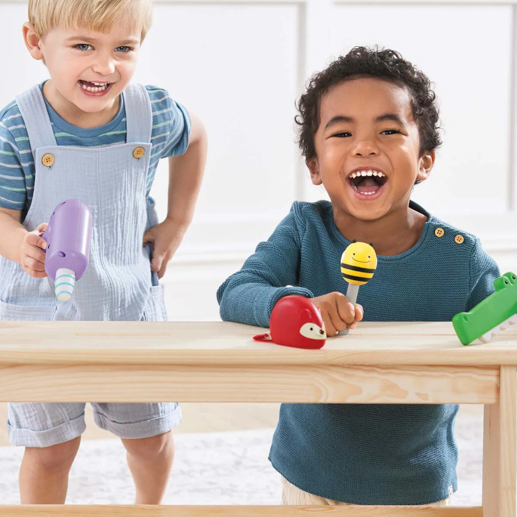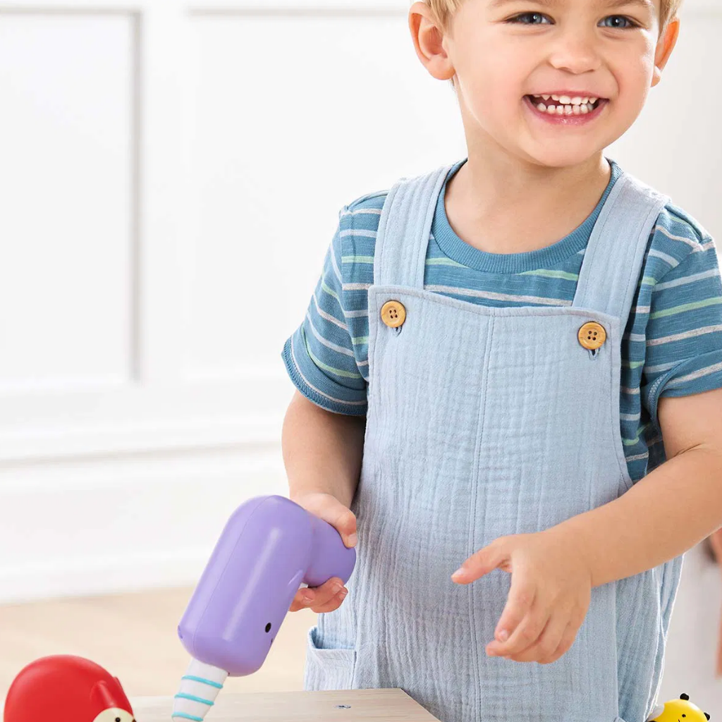 Skip Hop Zoo Oyuncak Tamir Seti, miniklerin hayal gücünü destekleyen, eğlenceli ve öğretici bir oyun deneyimi sunar. Sevimli Zoo karakterlerinden oluşan bu 4 parçalı set, çocukların evin her yerinde kendi tamir hikâyelerini kurgulamasına olanak tanır. Günlük oyunlara rol yapma becerisi kazandırırken, erken yaş gelişimini destekleyen fonksiyonel detaylar içerir. İleri geri hareket eden Timsah Testere, dönen Narval Matkap, dönebilen Arı Tornavida ve sayılarla süslenmiş çekilebilir kuyruklu Tilki Mezura; çocukların hem eğlenmesini hem de keşfederek öğrenmesini sağlar. Dayanıklı yapısı ve çocuklara uygun tasarımı sayesinde güvenli bir oyun ortamı sunar. Skip Hop Zoo Oyuncak Tamir Seti, çocukların ince motor becerilerini ve el-göz koordinasyonunu desteklemeye yardımcı olur. Dönen ve hareket eden parçalar sayesinde neden-sonuç ilişkisini kavramalarını kolaylaştırır. Mezura üzerindeki sayılar, erken dönem sayısal farkındalığın gelişimine katkı sağlar. Hayali oyun kurguları ise problem çözme ve yaratıcı düşünme becerilerini güçlendirir. Bu oyuncak tamir seti, okul öncesi dönemde çocukların günlük yaşam becerilerine ilgi duymasını teşvik eder. Rol yapma oyunları sayesinde çocuklar hem eğlenir hem de sosyal ve bilişsel gelişimlerini destekleyen bir oyun süreci yaşar. Evde, oyun odasında veya arkadaşlarla oynanan ortak oyunlarda uzun süreli ve keyifli kullanım sunar.