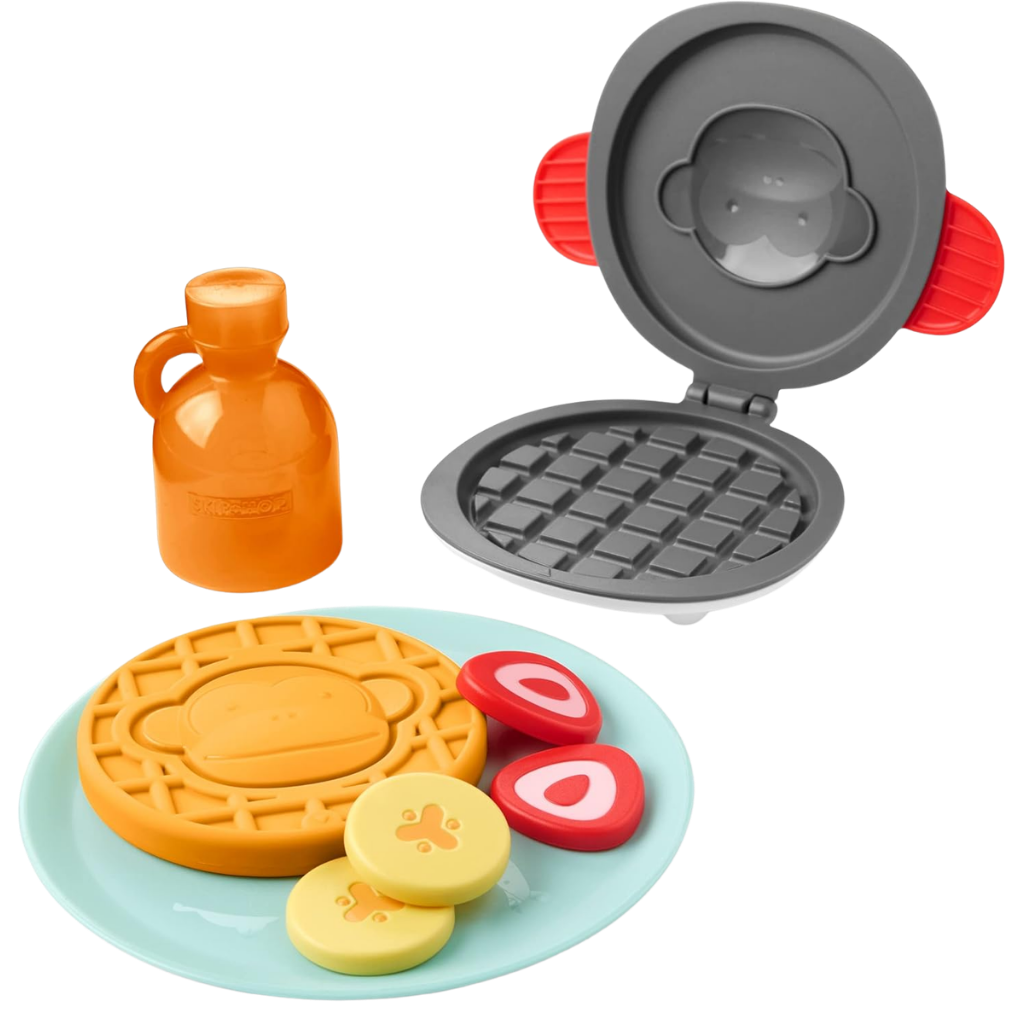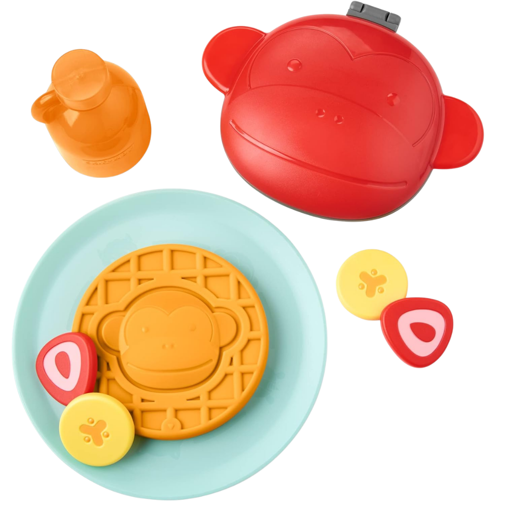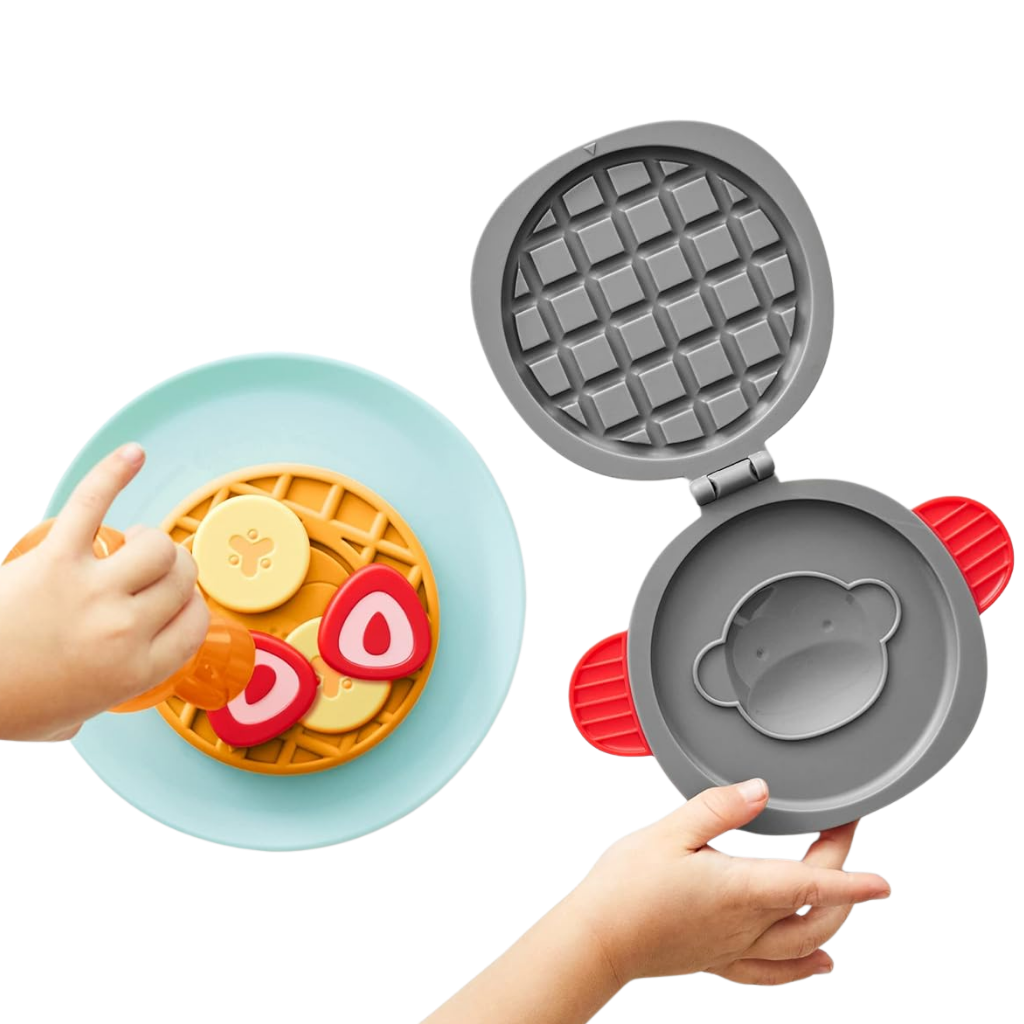 Kahvaltı hazırlamak hiç bu kadar eğlenceli olmamıştı. Skip Hop’un sevimli Zoo temalı waffle oyun seti, minik şeflerin hayal dünyasını canlandırmak için özel olarak tasarlandı. Çocuklar, gerçek bir kahvaltı hazırlıyormuş gibi waffle makinesini açıp kapatabilir, meyve dilimlerini tabağa yerleştirebilir ve en eğlencelisi de renk değiştiren sihirli waffle’ı soğuk suyla “pişirerek” maymun yüzünü ortaya çıkarabilir. Hem ince motor becerilerini destekleyen hem de rol yapma oyunlarını zenginleştiren bu set, çocukların bağımsız oyun kurmalarını teşvik eder. Zoo koleksiyonunun enerjik figürleri ile birleşen bu eğlenceli set, evdeki oyun zamanlarını daha yaratıcı ve keyifli hale getirir.