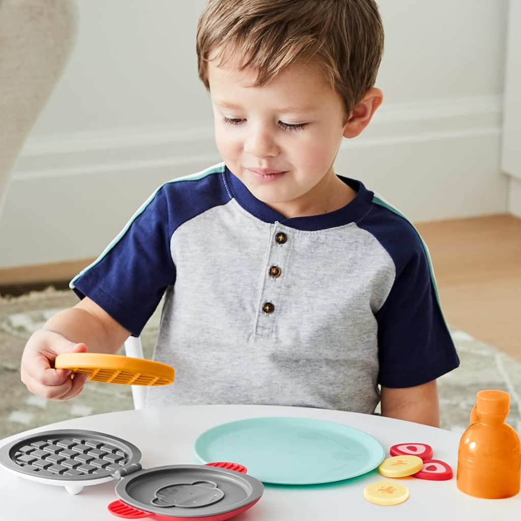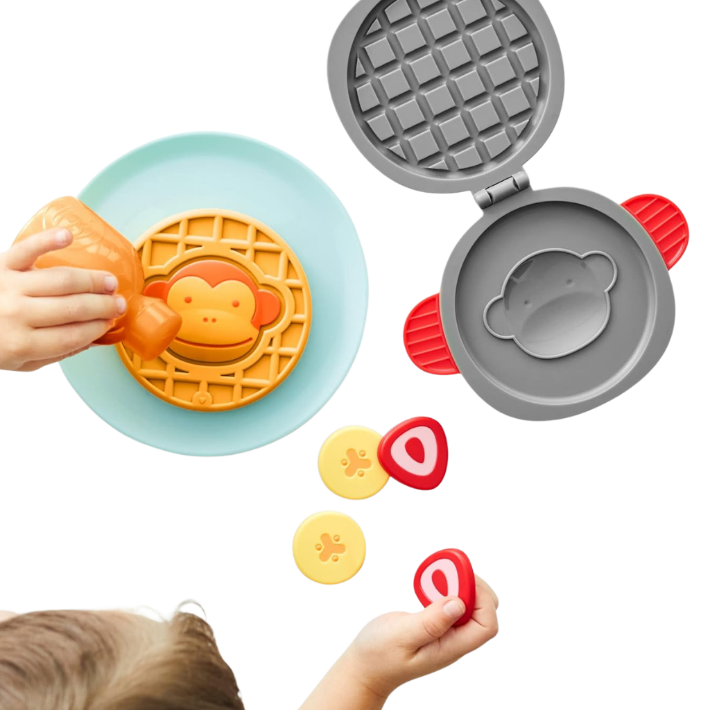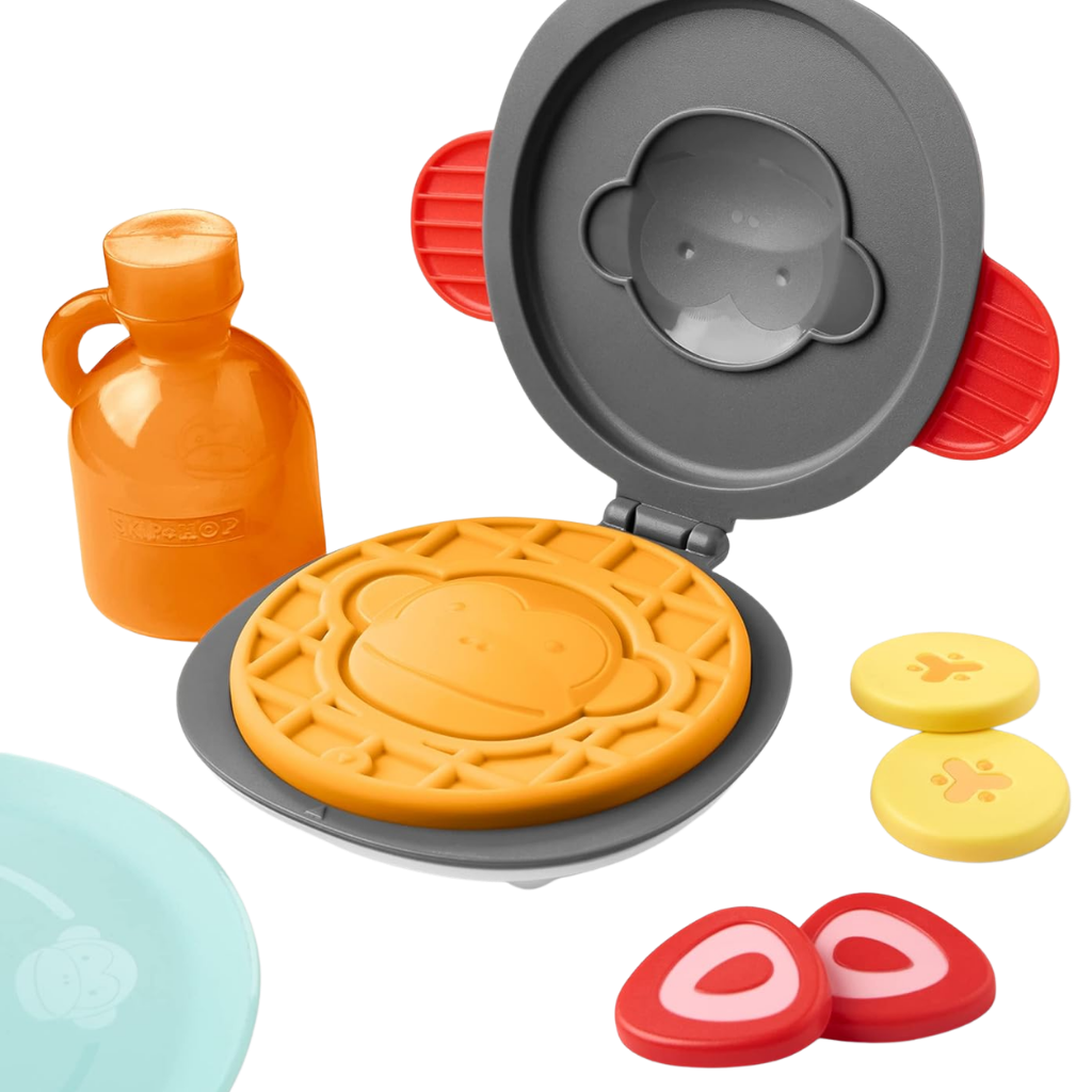 Kahvaltı hazırlamak hiç bu kadar eğlenceli olmamıştı. Skip Hop’un sevimli Zoo temalı waffle oyun seti, minik şeflerin hayal dünyasını canlandırmak için özel olarak tasarlandı. Çocuklar, gerçek bir kahvaltı hazırlıyormuş gibi waffle makinesini açıp kapatabilir, meyve dilimlerini tabağa yerleştirebilir ve en eğlencelisi de renk değiştiren sihirli waffle’ı soğuk suyla “pişirerek” maymun yüzünü ortaya çıkarabilir. Hem ince motor becerilerini destekleyen hem de rol yapma oyunlarını zenginleştiren bu set, çocukların bağımsız oyun kurmalarını teşvik eder. Zoo koleksiyonunun enerjik figürleri ile birleşen bu eğlenceli set, evdeki oyun zamanlarını daha yaratıcı ve keyifli hale getirir.