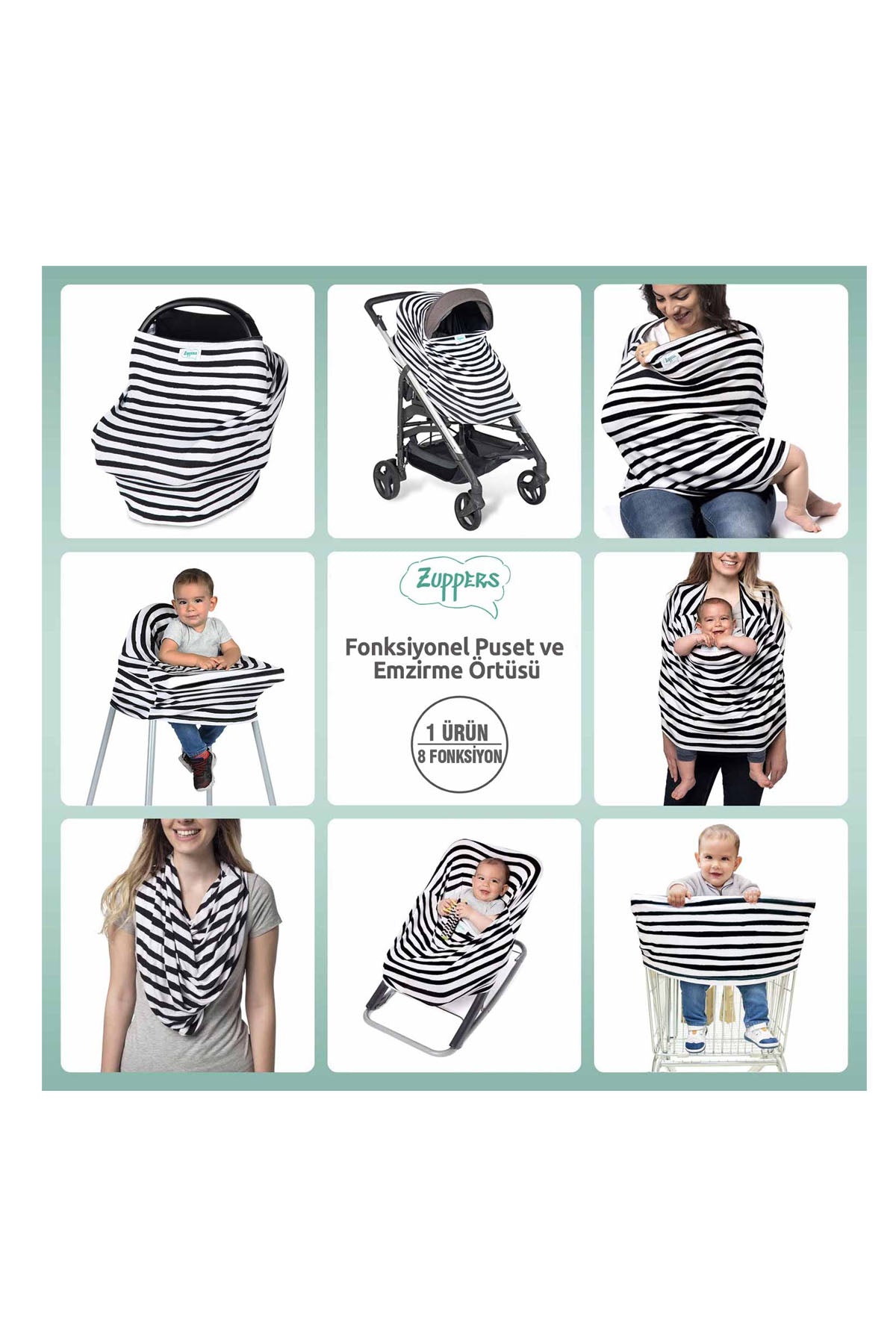 Zuppers Puset & Emzirme Örtüsü çok fonksiyonlu olup, 8 farklı şekilde kullanılabilir. Ana Kucağı / Oto Koltuğu / Puset Örtüsü: Yumuşak ve esnek kumaşı sayesinde tüm bebek arabalarına uygundur. İlk aylar ana kucağı / oto koltuğu için, bebeğinizin büyüdüğünde ise puseti için kullanılabilir. Arabayı bütün olarak çevreler, rüzgarda uçuşmaz, yere düşmez, sizi telaşlandırmaz. Bebeğinizi güneşten, parlak ışıklardan, hafif rüzgardan, tozdan, polenlerden ve istenmeyen bakışlardan korur.