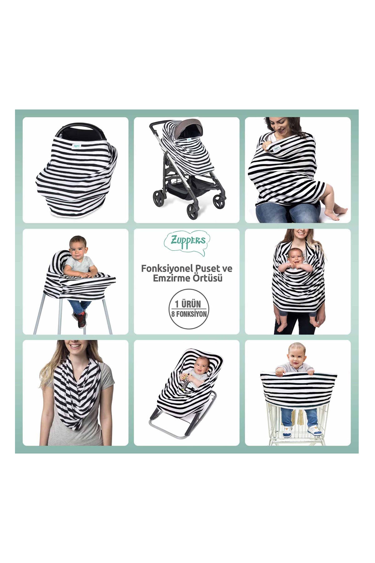 Zuppers Puset & Emzirme Örtüsü çok fonksiyonlu olup, 8 farklı şekilde kullanılabilir. Ana Kucağı / Oto Koltuğu / Puset Örtüsü: Yumuşak ve esnek kumaşı sayesinde tüm bebek arabalarına uygundur. İlk aylar ana kucağı / oto koltuğu için, bebeğinizin büyüdüğünde ise puseti için kullanılabilir. Arabayı bütün olarak çevreler, rüzgarda uçuşmaz, yere düşmez, sizi telaşlandırmaz. Bebeğinizi güneşten, parlak ışıklardan, hafif rüzgardan, tozdan, polenlerden ve istenmeyen bakışlardan korur.